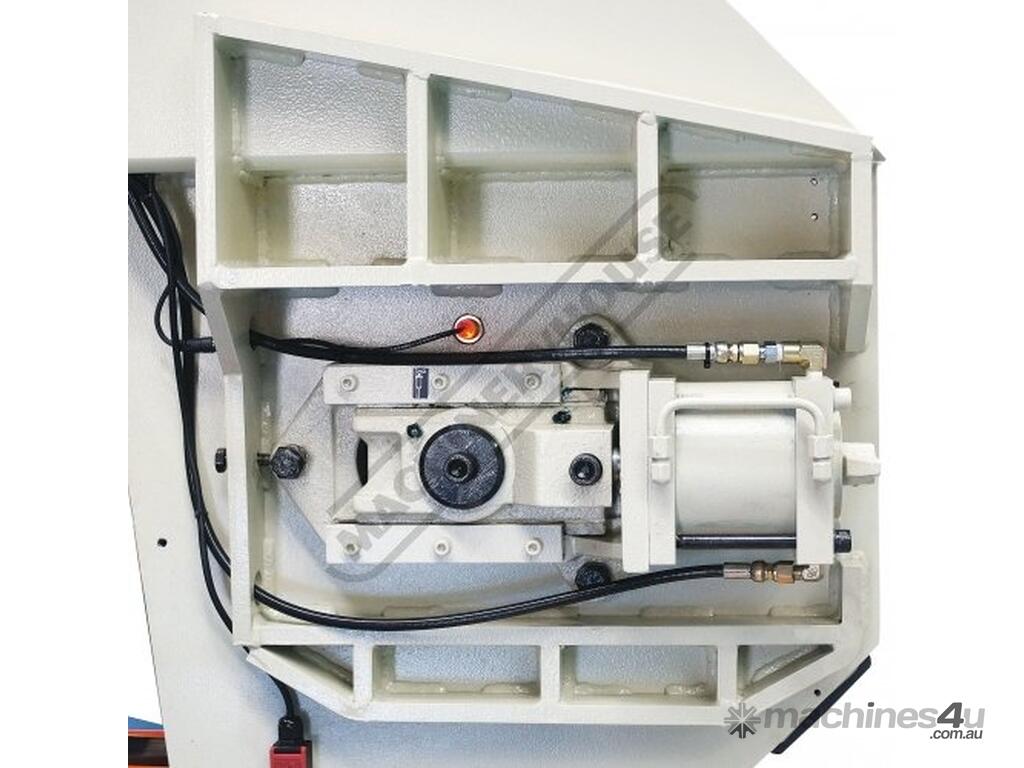 Hydraulic operated carbide blade guides with additional ball bearing guides provides superior accuracy and reduce friction for longer blade life