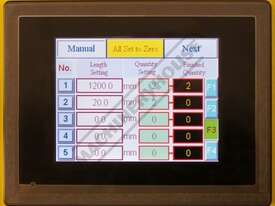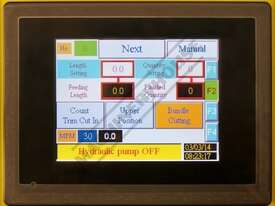 Fully automatic and intelligent HMI touch screen programmable control accepts many different job quantities and lengths complete with hydraulic vice clamping and hitch feed system