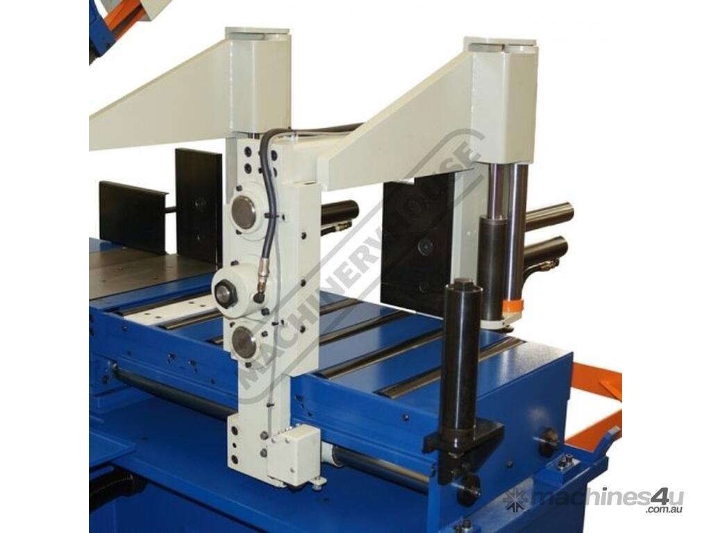 Hydraulic retracting rear vice jaw (feeding vice only) reduces friction from jaws rubbing on material during the feeding process