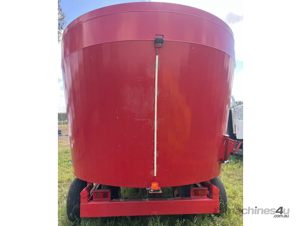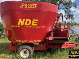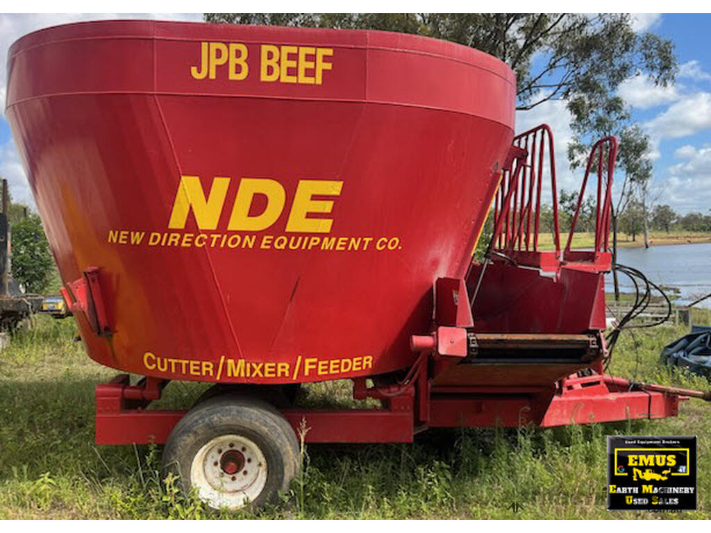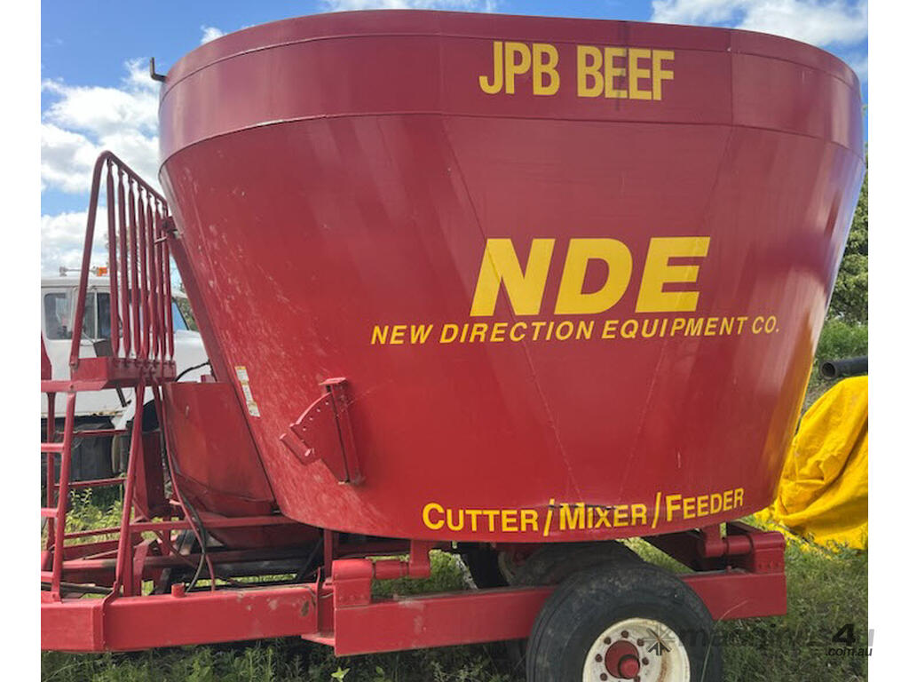a specific model of used single-screw feed/mixer wagon manufactured by NDE, often found for sale in Australia, featuring weight scales and a 2-speed gearbox for farm use in preparing livestock feed. These farm machines are listed for sale by dealers like Bates Farm Machinery, with recent listings showing prices around AUD $44,000 (including GST).