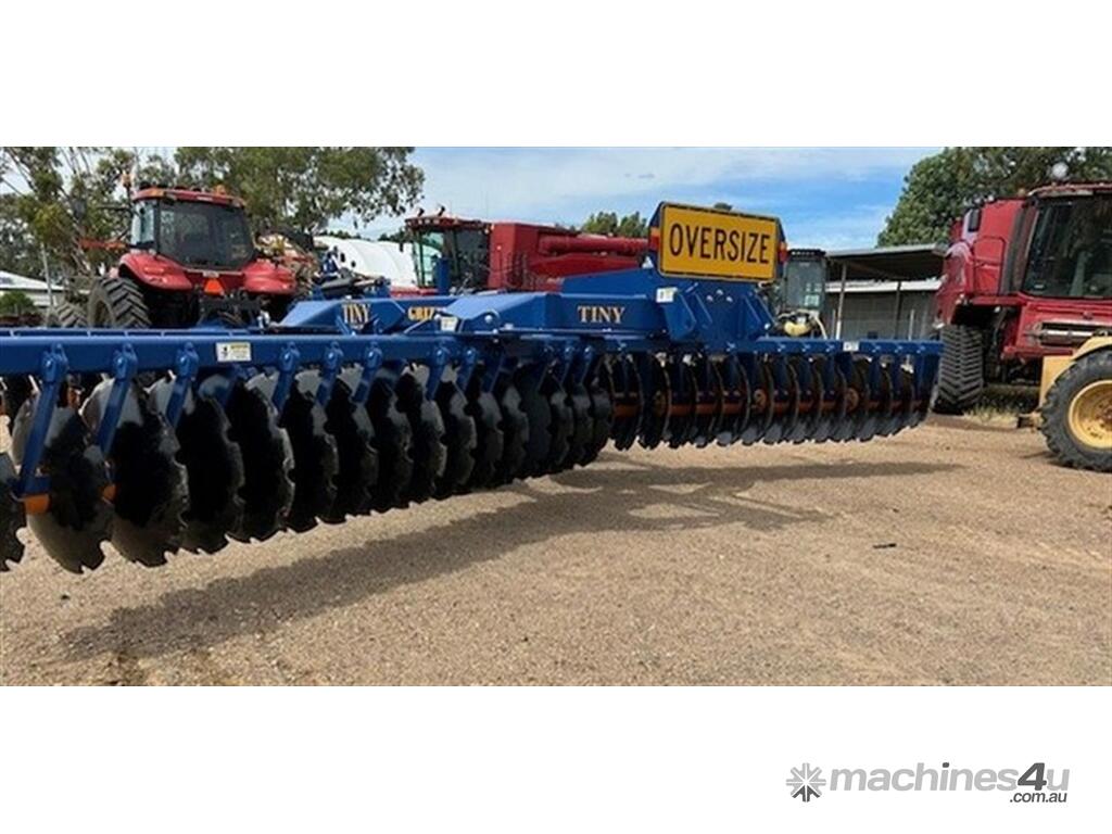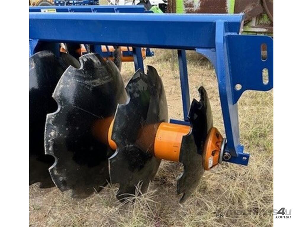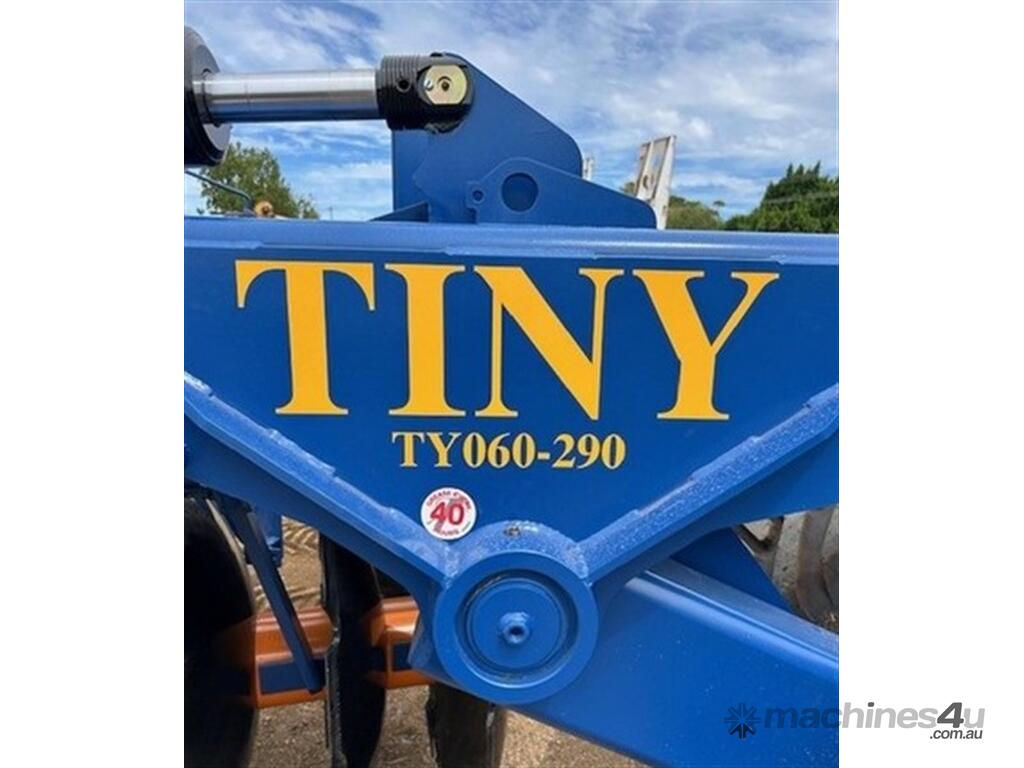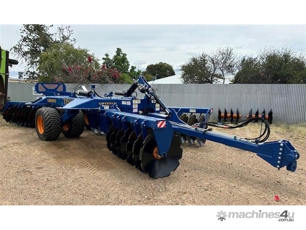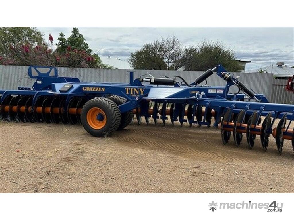 NEW 2024 GRIZZLY Tiny 290 Plate. New machine, 36" x 12.7mm Scalloped Discs Front and Rear, Oersize sign and rear lights, CAT 4 articulated pull, Tongue, Cutting Width at 19 Degrees 8.37m. Serial # 8018. Model # TY060. Located Moree NSW. Available at MRE Auctions.