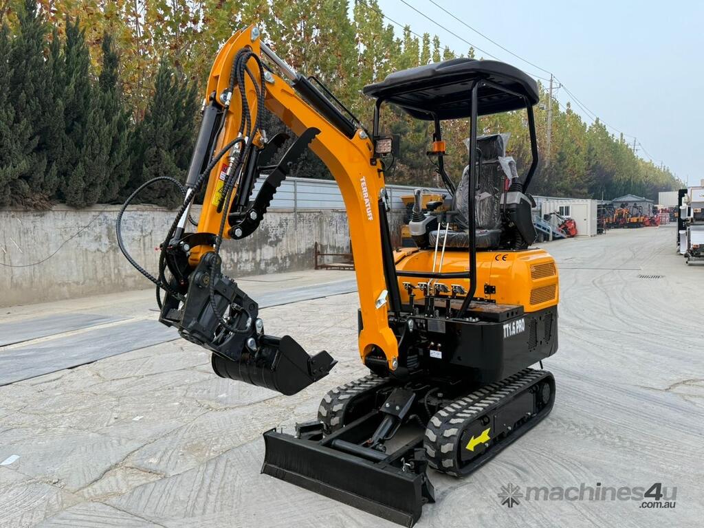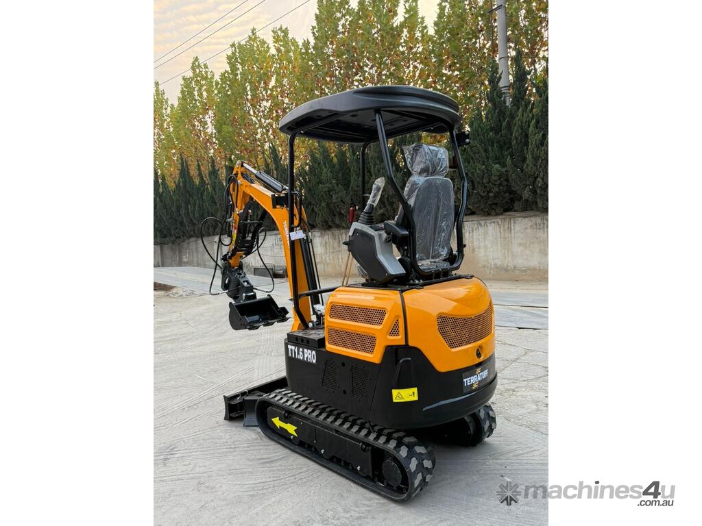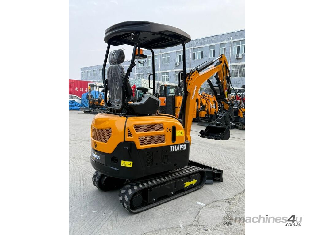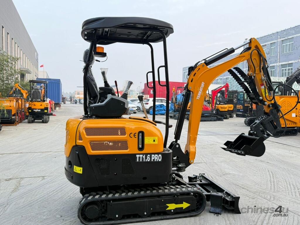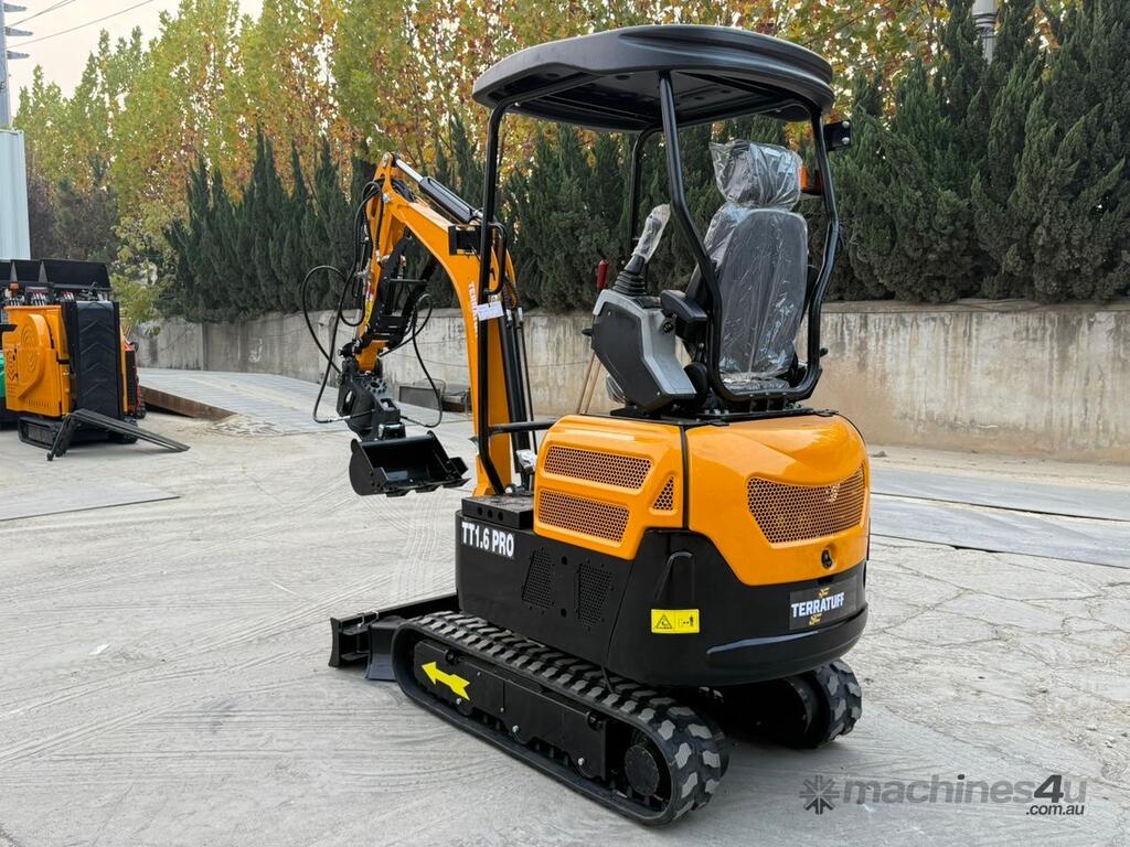 NEW 2025 TeraTuff TT1.6 Pro 1.6T Excavator. Kubota D902 Motor, 16hp, Boom Swing, Hydraulic Tilt Double Hitch with lock, Retractable Track, 2 Speed, Folding Boom, 200 x 72 x 45 tracks, Enclosed Drive Motors. This TT1.6 Pro 1.6T comes with GP Bucket, Ripper, Wood Grab, Auger, Sand Bucket, Hydraulic Thumb Clamp, a set of spare rubber tracks and filters for future services. 2 year factory warranty. All this for only $22,900 plus GST. Take advantage of the tax instant right-off while it's still available.
