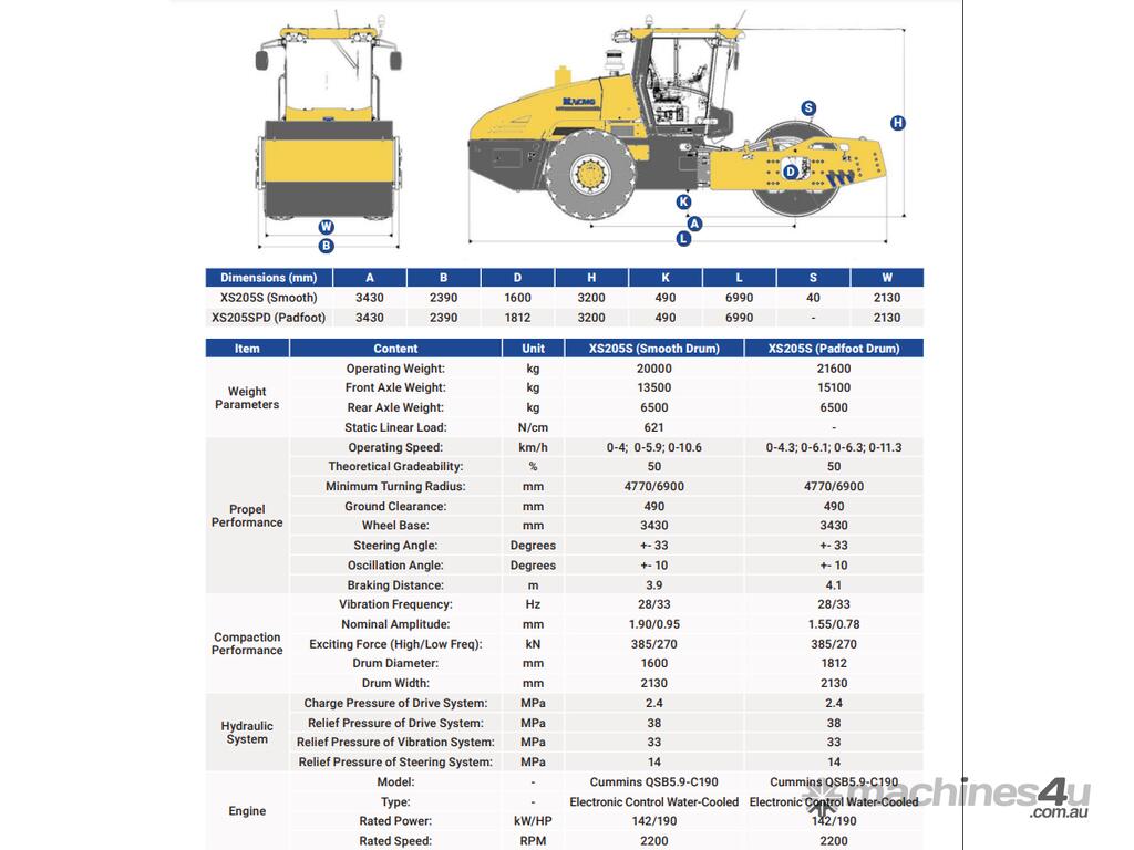 The XS205 vibratory drum roller is available as either Smooth drum or Padfoot drum variants, offering you options to best suit your requirements.