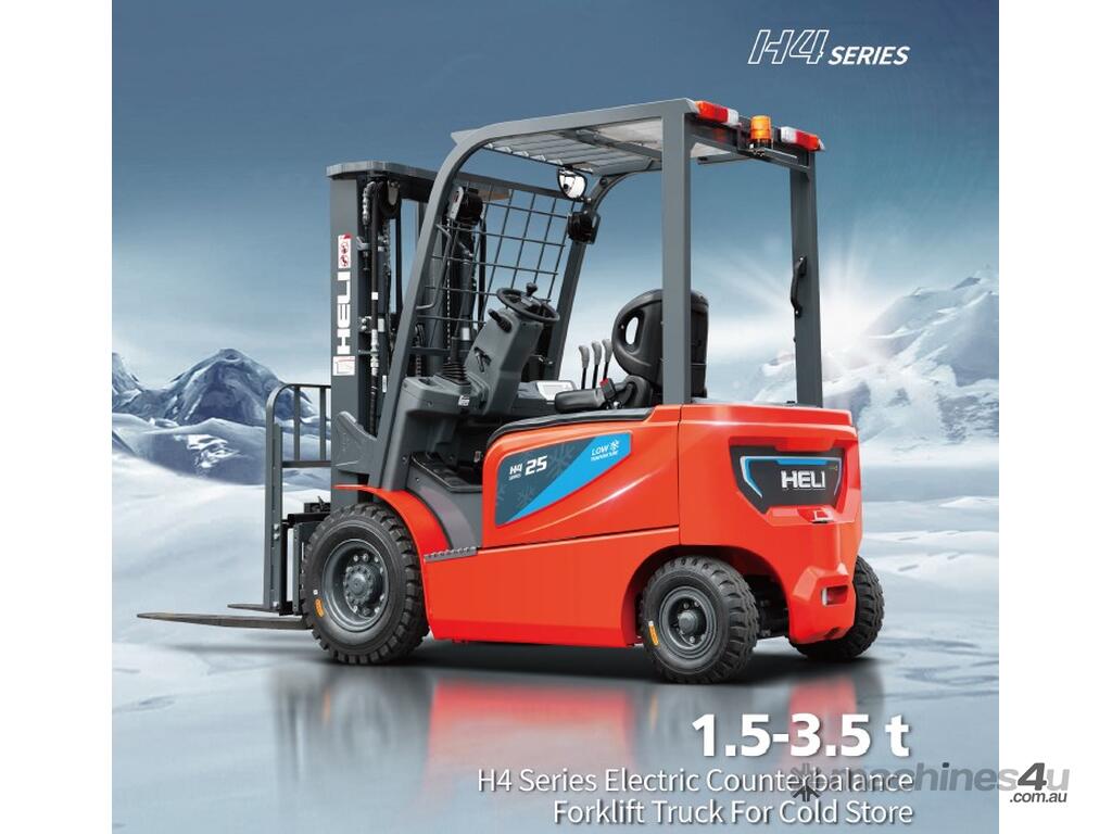 The Heli H4 is a line of electric counterbalanced forklifts (both 3-wheel and 4-wheel variants, depending on capacity) by HELI. It covers a wide range of lifting capacities, battery types, and is designed for versatility in different work environments — indoor, outdoor, cold storage, etc