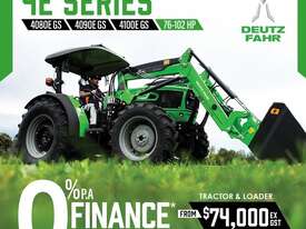 *Special offer of 0.00% p.a. or a FREE Bucket is for new Deutz-Fahr 4080 E GS Rops tractor only based on minimum of 30% loan equity and monthly repayments in arrears over a 36 month agreement term.