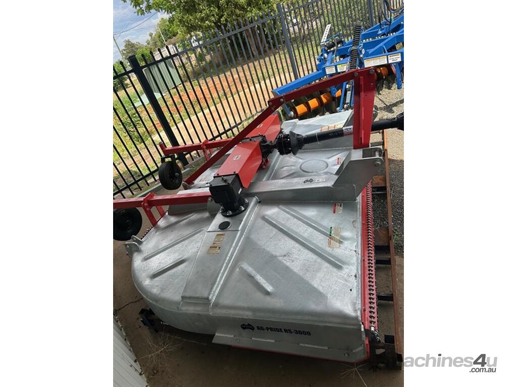 NEW AG-PRIDE HS-3000 10' Slasher. 10 foot cut, 3.00m rotary cutter, Cat 2 & 3 linkage, Front and rear safety chain kit, Heavy duty PTO shaft, Floating top hitch, 130HP 540rpm Gearbox, Dual heavy duty dishpan stump jumper base & blades, Slip clutches, dual rear wheel kit. Located Moree, NSW. Available at MRE Auctions.