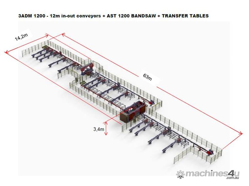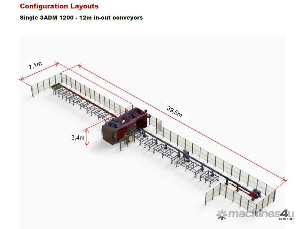 The 3 ADM 1200, 10-axis, 3 spindle CNC Beam Drilling Line.