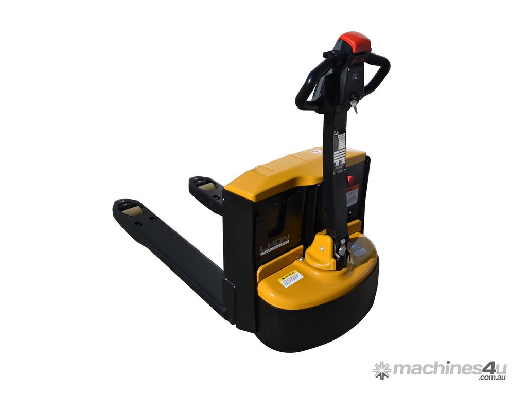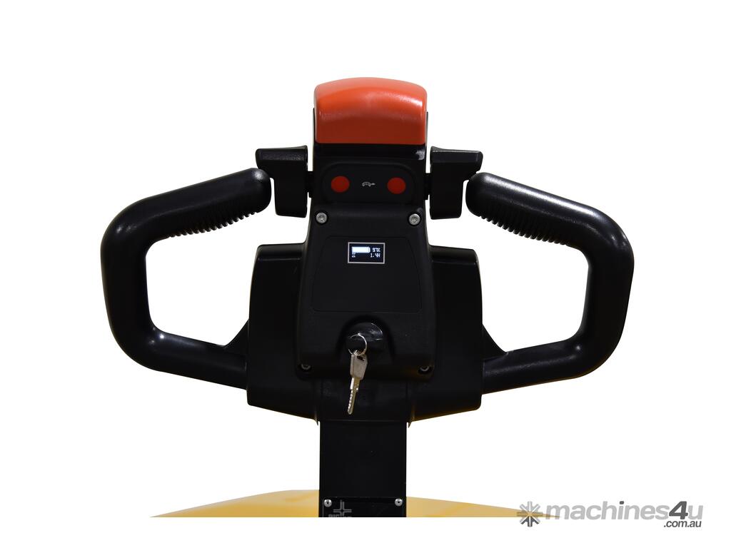 Ergonomic Handle: The pallet truck is equipped with an ergonomic handle featuring a reversing switch, horn, and dual ``butterfly`` thumb controls for safe and precise operation.