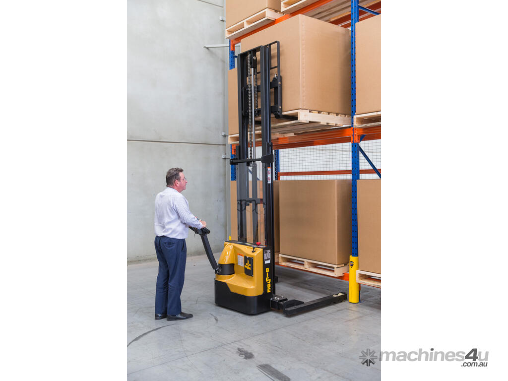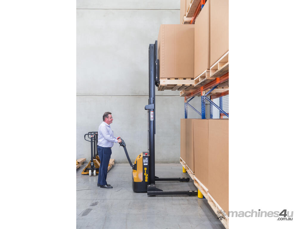 Ergonomic Dual-Hand Controls: The stacker is equipped with ergonomic dual-hand controls for easy and intuitive operation, contributing to a seamless material handling experience.