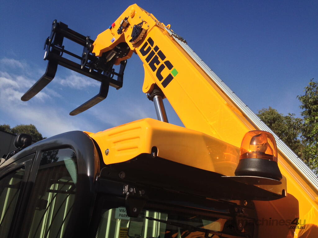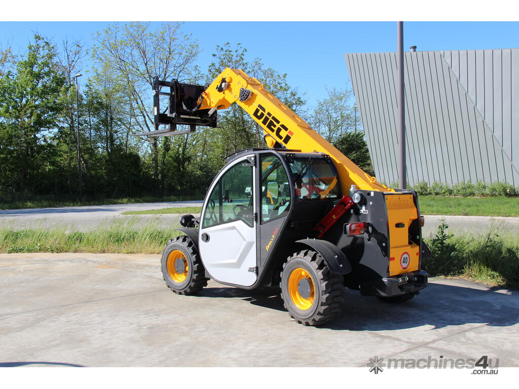 The cab (the most spacious in its category) is designed to ensure a high level of comfort, thanks to the new doors in DSCS, an innovative lightweight composite material, with high thermal and acoustic insulation characteristics, made by the Dieci Research and Development centre. The dual objective of significantly lightening the vehicle (improving its performance) and considerably increasing the thermal and acoustic insulation, comfort and space is obtained by using this material.