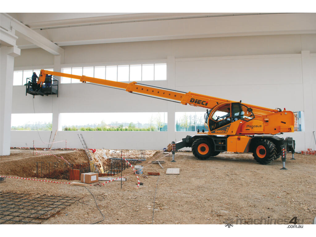 The Dieci Pegasus 50.19 is a 360° continuous rotation telehandler. It's extreme flexibility of use and the numerous different attachments available, make it a versatile machine that can be used as a telehandler, aerial platform, crane or more.