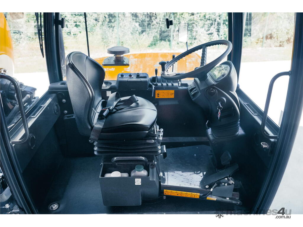 The vehicle is equipped with servo-controlled 2 speed transmission gearbox, hydrostatic transmission, 4 driving and steering wheels with braking on all wheels, oil-bath disc brakes, discharge chute adjustable in height and with 180° rotation.