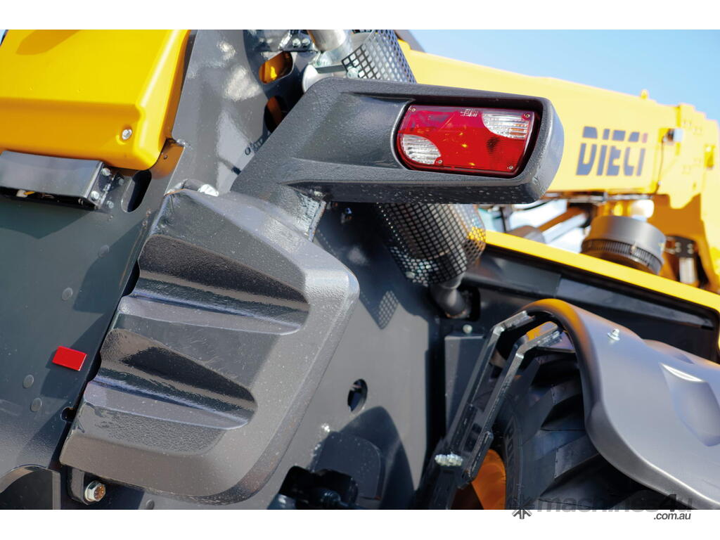 These machines are equipped with hydrostatic transmission combined with pedal "inching" command, that allows the vehicle to run at slow speed with the engine at full throttle. It is particularly suitable for loading and unloading materials, thanks to its tilting kinematic mechanism equipped with counter-lever, which allows to considerably increase the rotation angle of the fork carrier plate. The extension cylinder located inside the boom also improves visibility and safety in use.