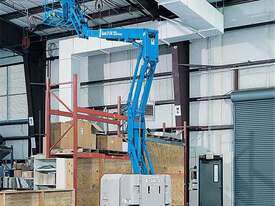 The Genie Z34/22N is a compact electric articulating boom lift designed for quiet, emission-free indoor and outdoor access. Its narrow chassis allows operators to work in aisles, congested areas and through standard double doorways, while the articulating jib provides precise positioning for overhead tasks.