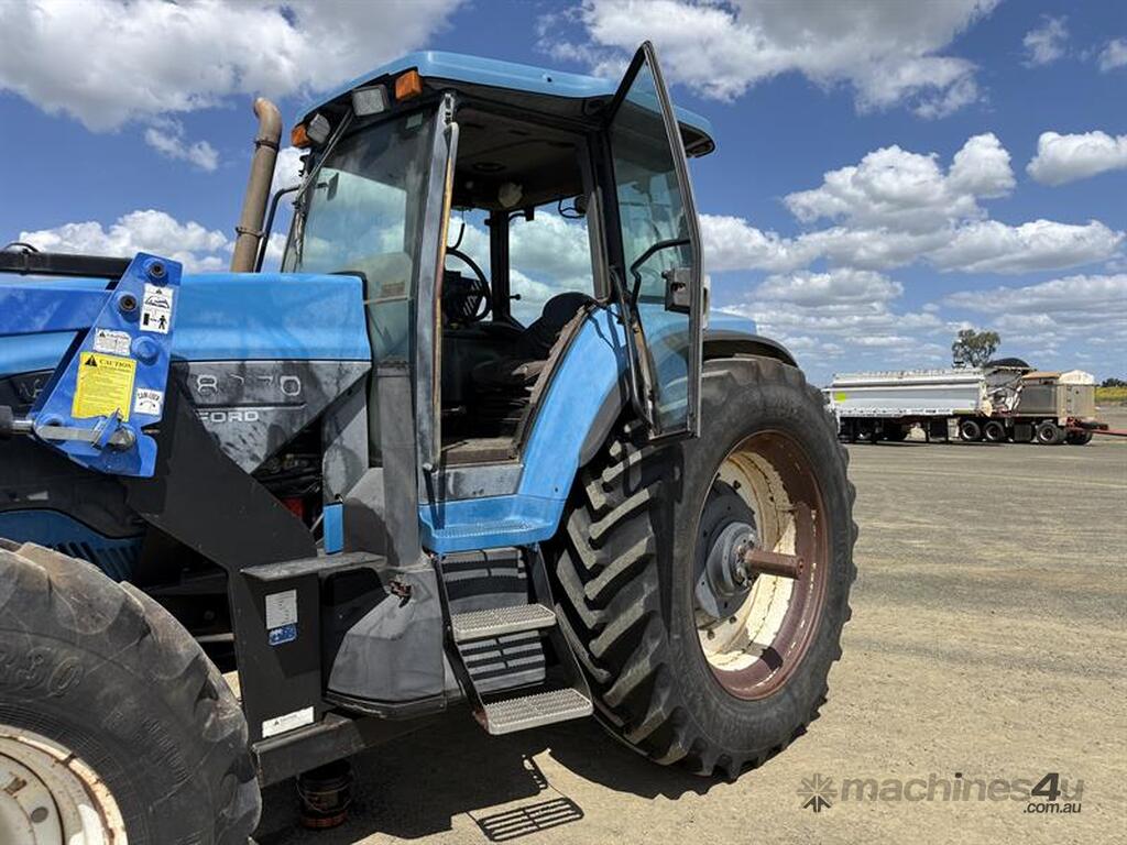 NEW HOLLAND 8770 TRACTOR, S/N: D418292, E/N: ###, 14,936 HOURS SHOWING. LOCATION: HALFERTY STREET, EMERALD, QLD 4720. INSPECTIONS & COLLECTIONS: MONDAY TO FRIDAY, 8AM TO 4PM. ENQUIRIES: RYAN OGDEN BROWN ON OR RYANEMERALDAUCTIONCENTRE