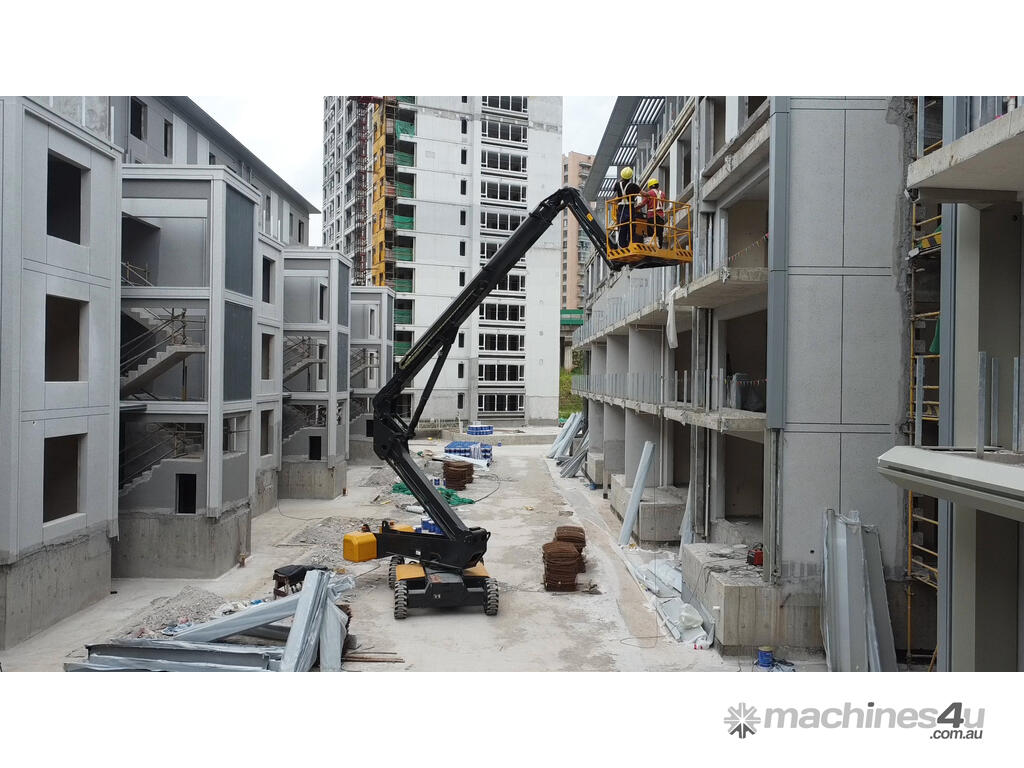 Operator anti-entrapment device as standard, work lights and load sense this articulated electric boom lift is perfect for night work, tunnels, indoor applications, or any noise sensitive areas.