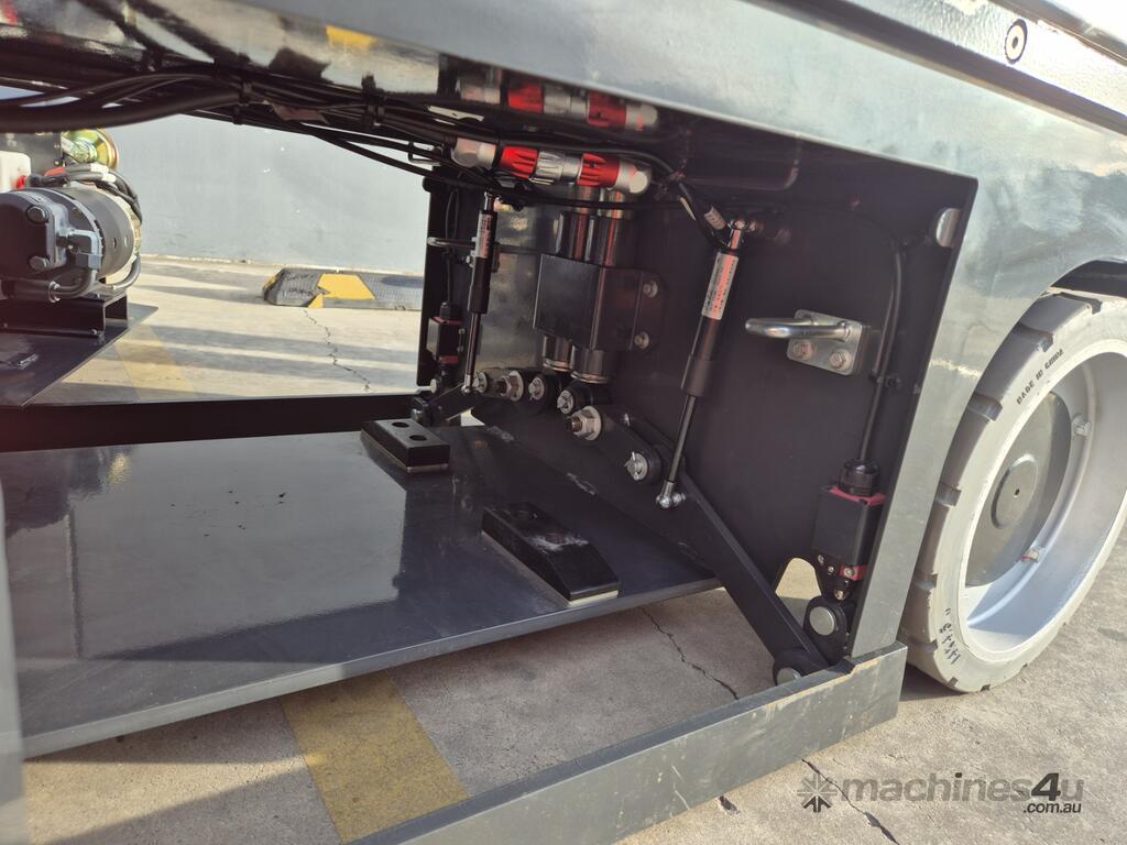 Add the versatility of an extendable platform, active pothole protection, motion alarm, emergency lowering system, ac drive motors there is not much you cannot achieve with this unit. A 230kg platform with overload system capacity and folding guardrails.