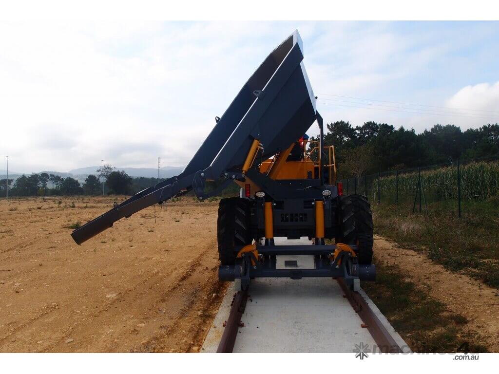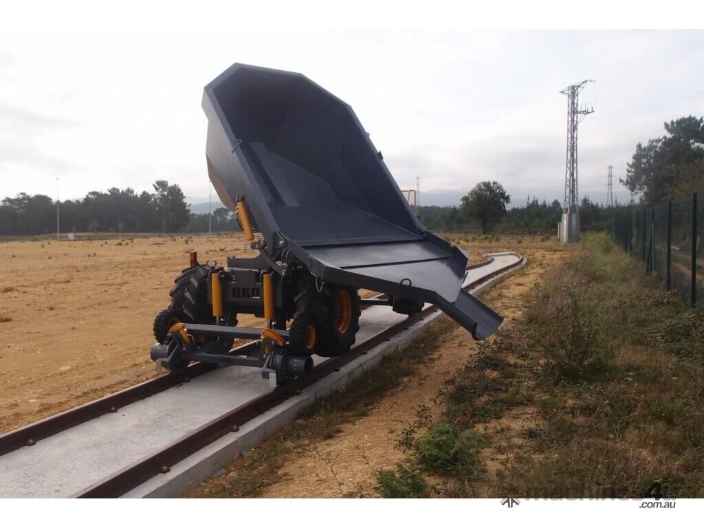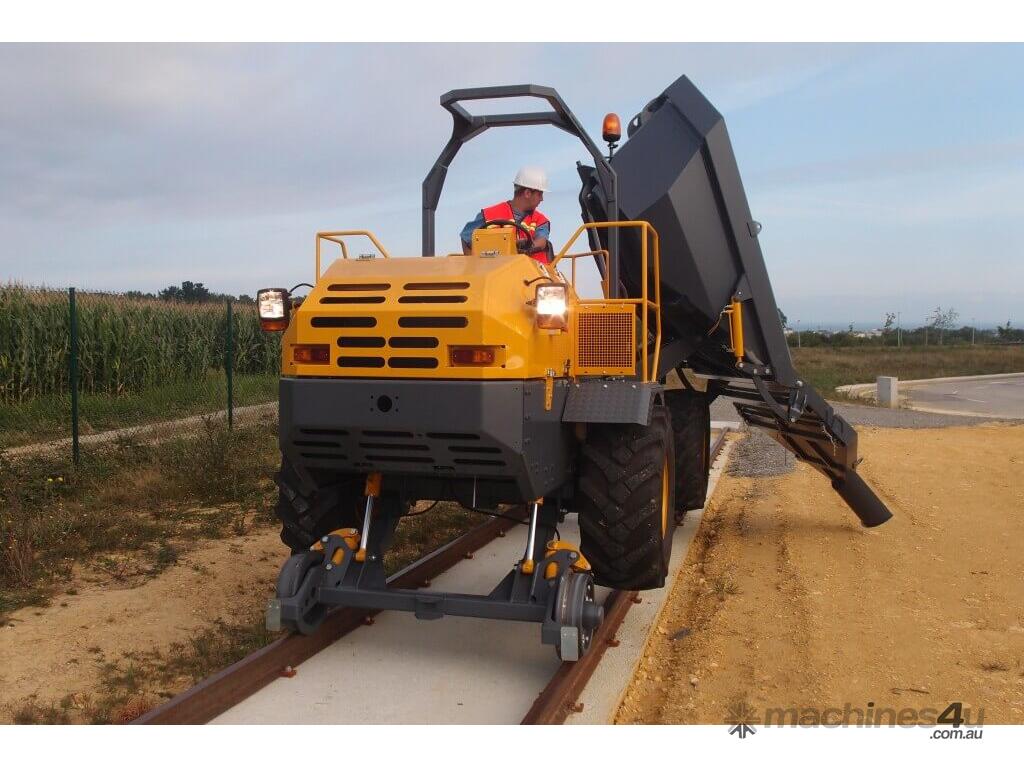 Articulated chassis machine with 9 ton payload and state of the art design and advanced features. Advanced design with the hopper behind the driver that increases visibility and therefore safety and comfort. Multipurpose machine designed for a wide variety of attachments like brush cutter, snow plough, concrete mixer, etc.