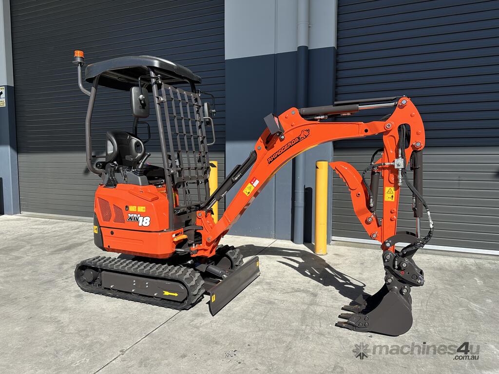 The Rhinoceros XN18L Mini Excavator is a versatile and compact machine weighing 1.8 tons, equipped with a Japanese Kubota D902 3cyl diesel engine, and features 2-speed tracking, hydraulic quick hitch as well as a new swing boom with main lifting hydraulic cylinder located on top . All hydraulic hoses are mounted inside the boom.