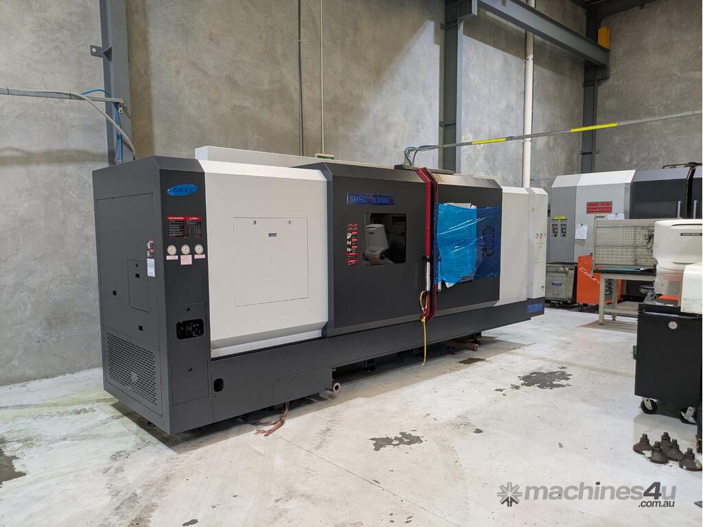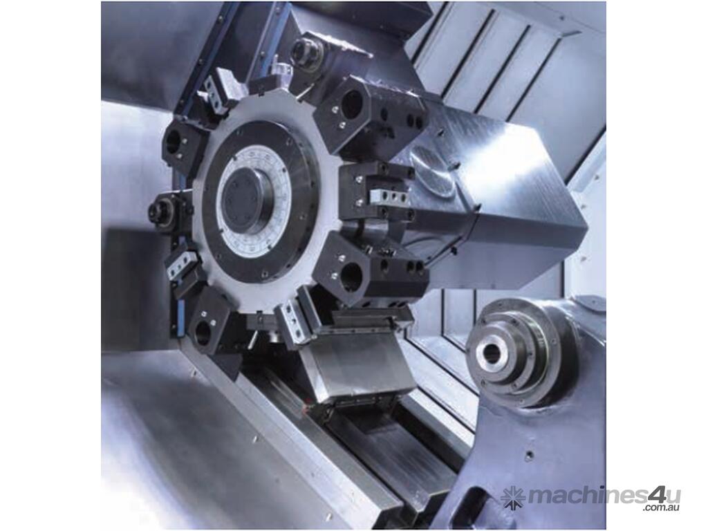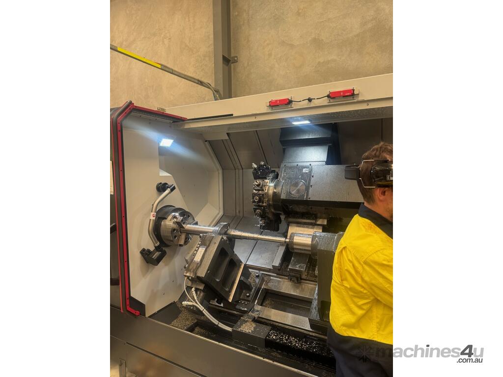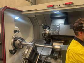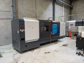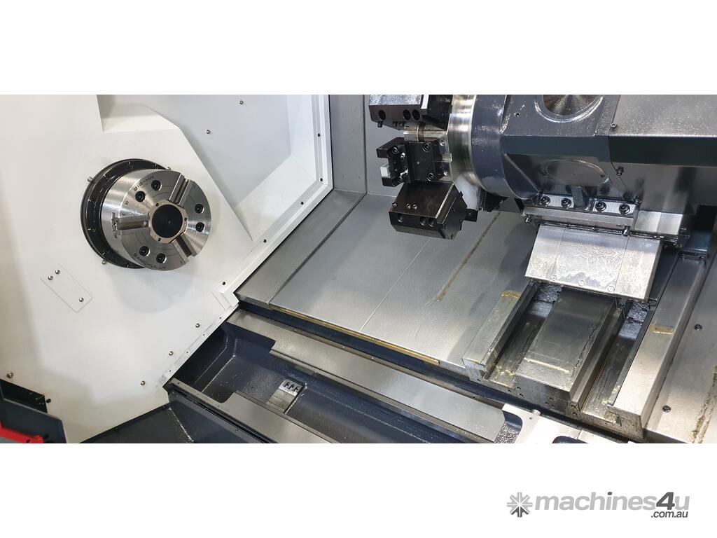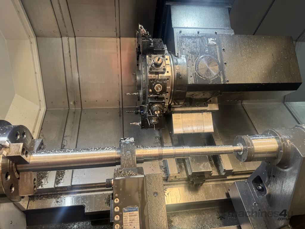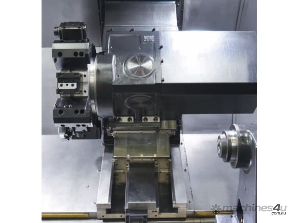 - Korean Made CNC Slant Bed Lathe with solid slides including Y axis and C axis Live Tool capabilities, fanuc control system, designed for general engineering and manufacturing industry.