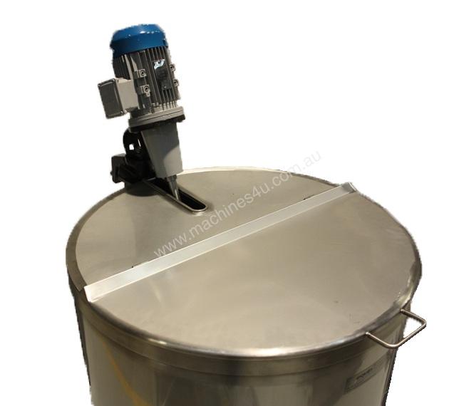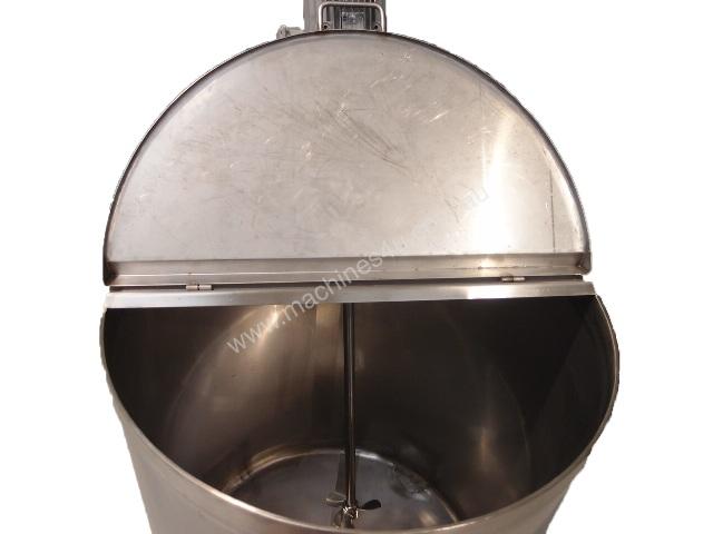 Tank has an open top with split hinged & fixed lid. Tank is fitted with compensated mixing bracket to suit a clamp on liquid agitator. 15 degree conical bottom with 40mm centre discharge with BSP male fitting. Stainless steel polished legs with crossbracing on compensation pads. Legs have adjustable feet, locakable castor wheels can be fitted as an option.