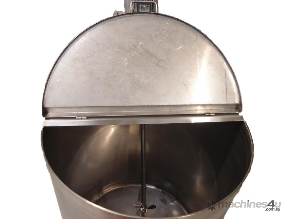 Tank has an open top with split hinged & fixed lid. Tank is fitted with compensated mixing bracket to suit a clamp on liquid agitator. 15 degree conical bottom with 50mm centre discharge with BSP male fitting. Stainless steel polished legs with crossbracing on compensation pads. Legs have adjustable feet.