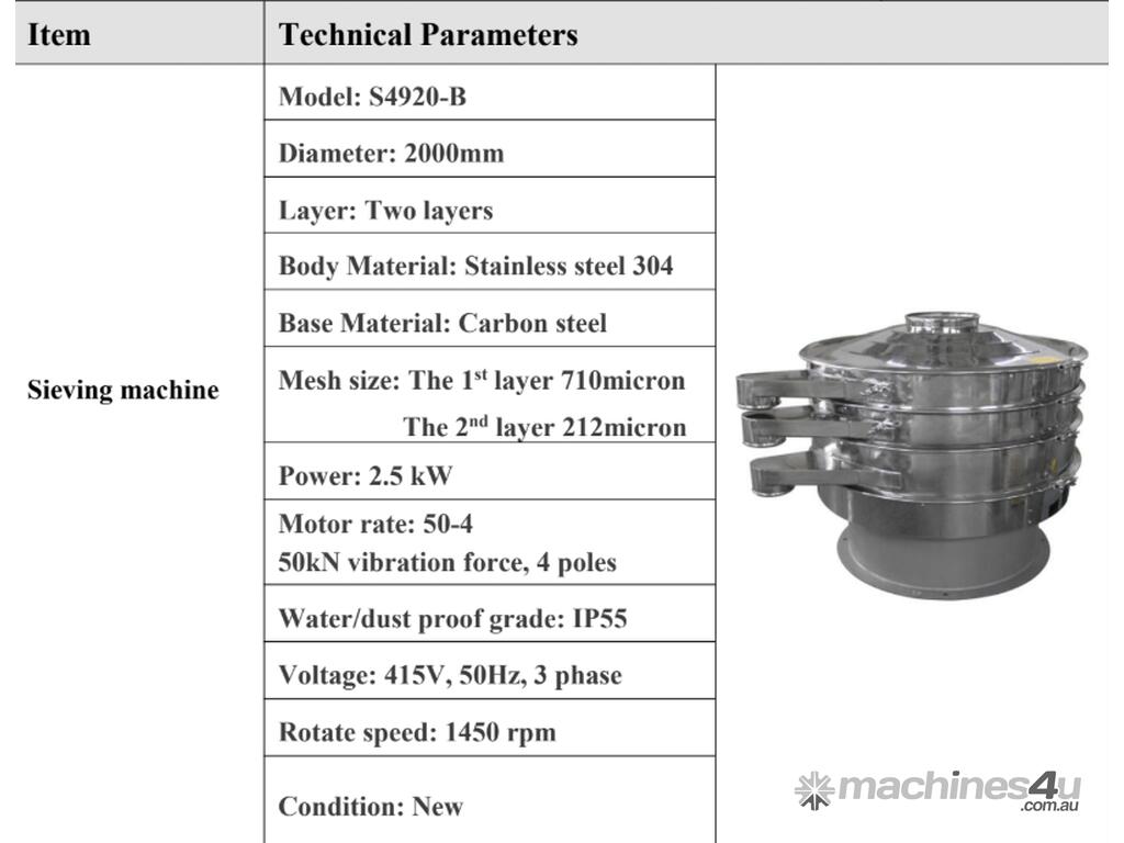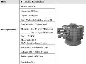 Brand new, 2m diameter Ultrasonic Vibrating Screen (DZJX S4920-B) complete with GTS30 ultrasonic screening system.