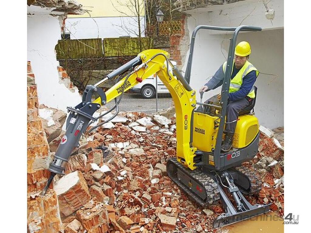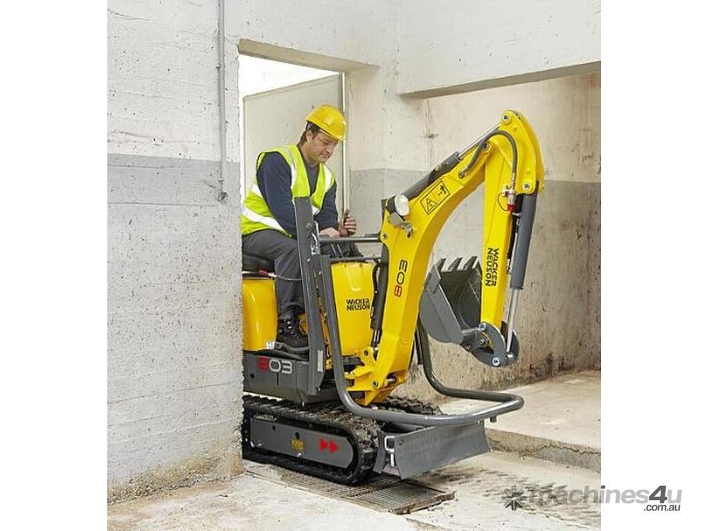The 803 is the smallest Wacker Neuson excavator on the market, but it leaves absolutely nothing to be desired in terms of performance. It's collapsible ROPS & variable tracks allows it to condense to just 700mm wide, allowing it to fit perfectly through interior doors and fence gates. It's powerful hydraulic performance allows for the use of a multitude of attachments.