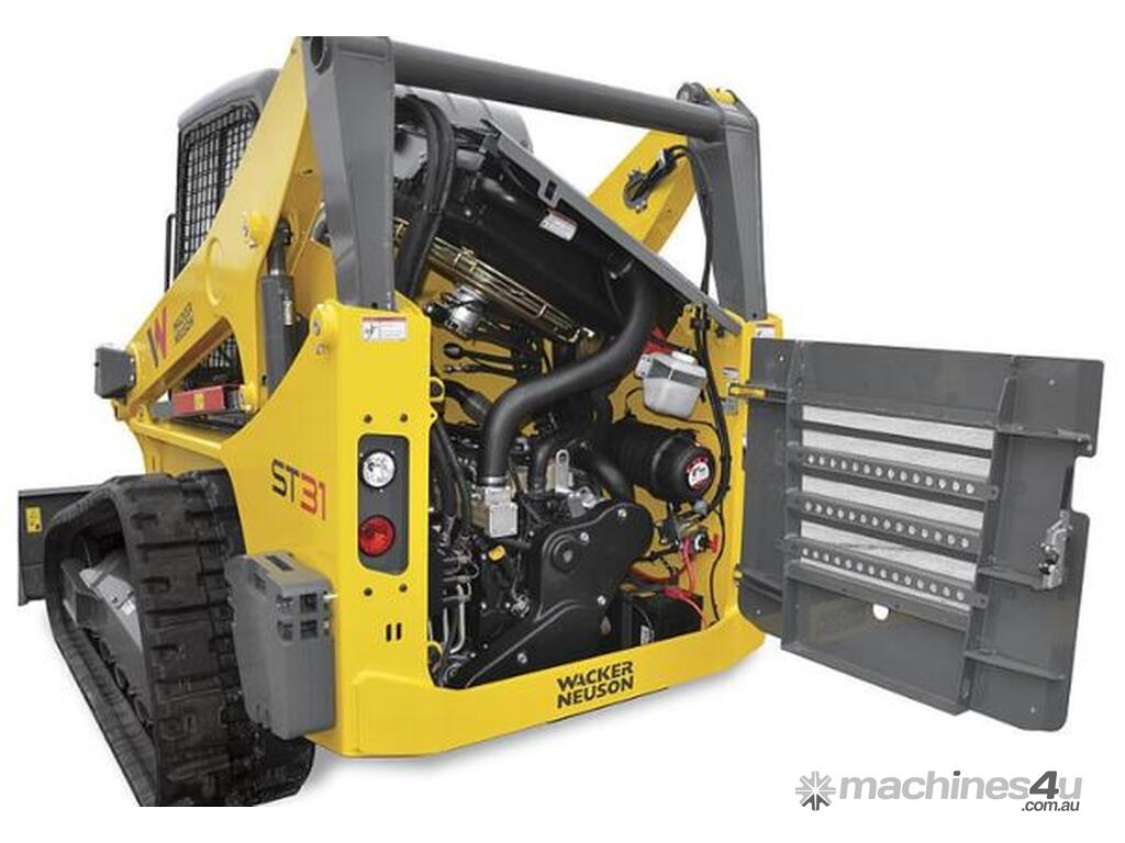 The ST31 matches the compact size of a medium frame with lift capacity of larger loaders. The vertical lift arm, 3.2 meters lift height and 74hp regeneration free engine, make the ST31 an accomplished material handler, perfect for use in a wide range of applications, from moving palletized material around a construction site to truck loading. The wide, double-steel reinforced tracks provide stability and reduced total cost of ownership. The forward tipping cab allows easy access to hydraulic pumps and motors making maintenance an easier and more comfortable task.