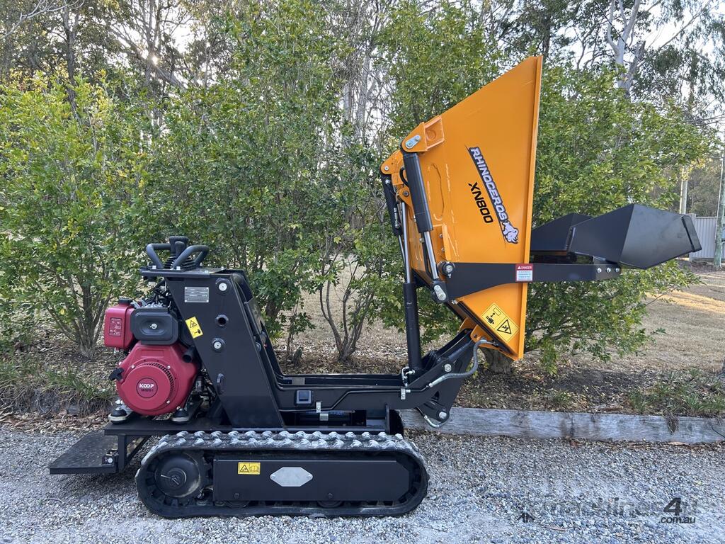 NEW upgrade model just arrived . Rhinoceros XN800 Tracked , 800Kg load capacity . Fully hydraulic operated ,scissor lift ,Self loading mini dumper. easily lift up to a height of 1740mm , easy loading to a Ute or trailer , and easy access to narrow space .price for Koop single cylinder air cool Diesel engine is $8990.
