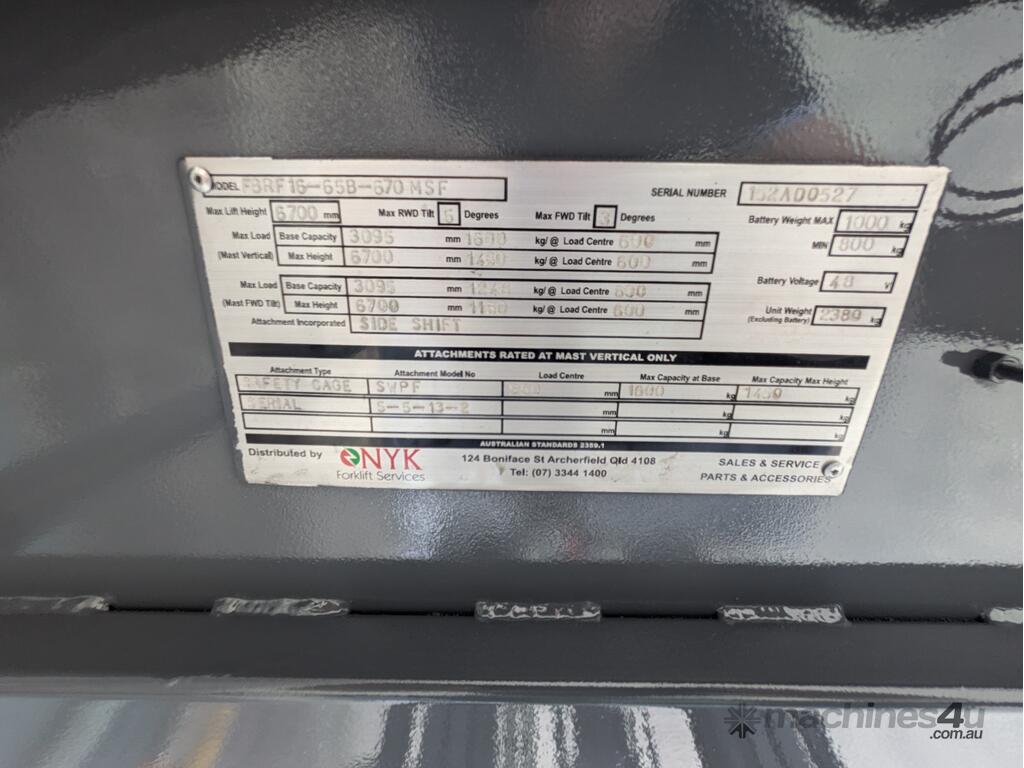 The NICHIYU FBRF series are well-known for their high-lift capability, quick travel times and compact design. The FBRF-16 is designed with NICHIYU's innovative AC electric motor technology, ensuring smooth operation and efficient energy use. Its re-engineered chassis, enhanced mast rigidity, and tiltable integral side shifter work together to provide outstanding stability and accuracy, even in compact or high-demand environments.