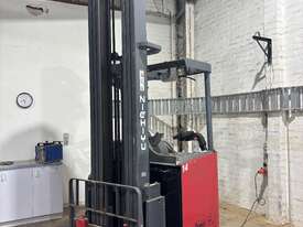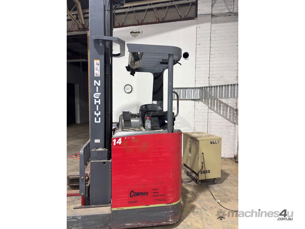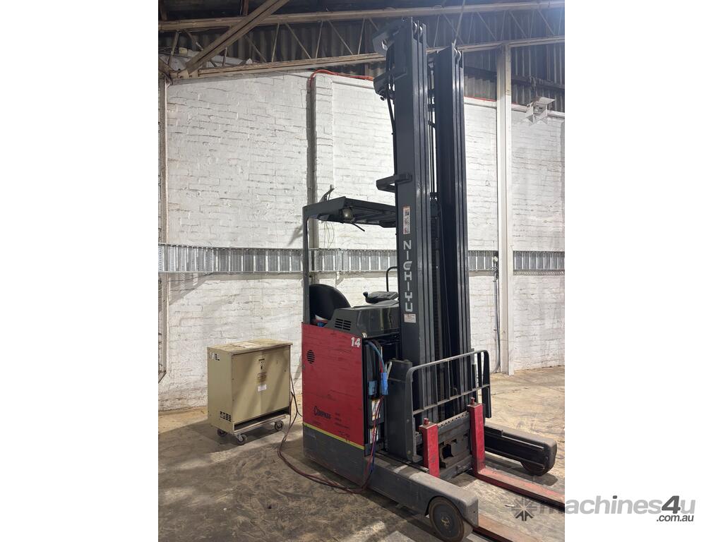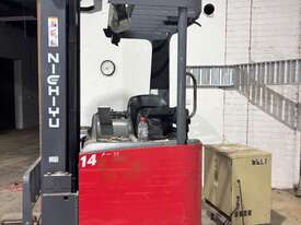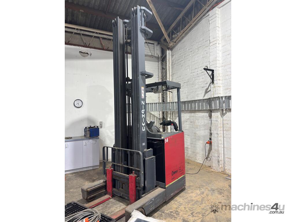 This reliable NICHIYU FBRF narrow aisle reach truck is a proven performer, ideal for warehouse and high-racking applications. Designed for efficiency in tight spaces, this unit is well-equipped and ready for immediate use.