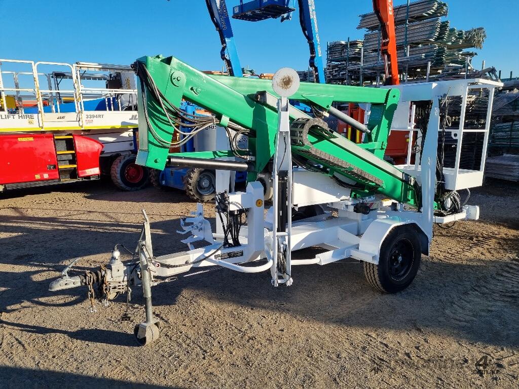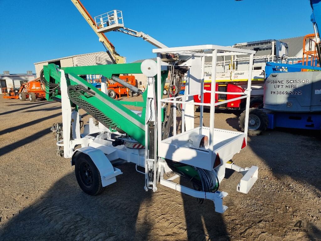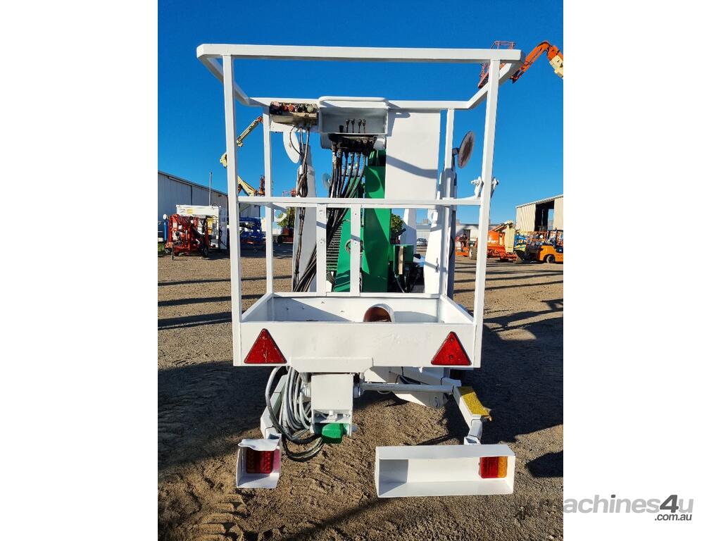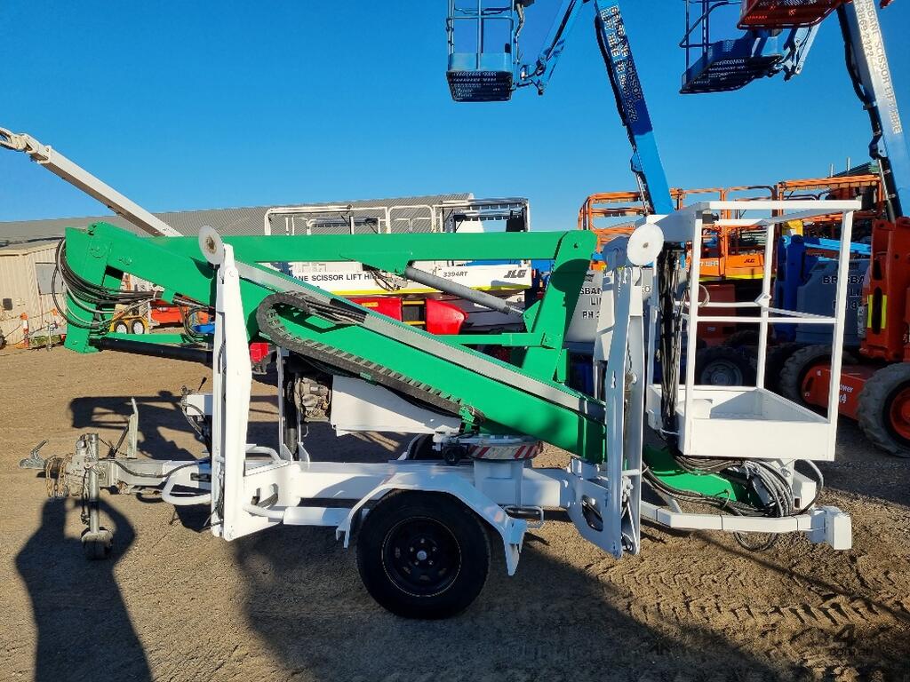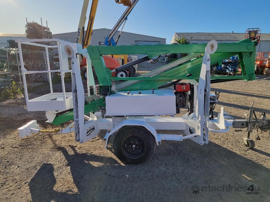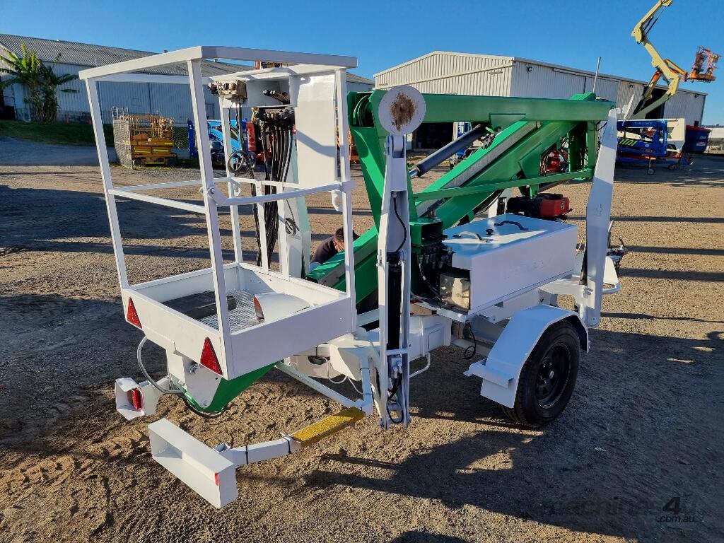 This trailer-mounted cherry picker in excellent condition.