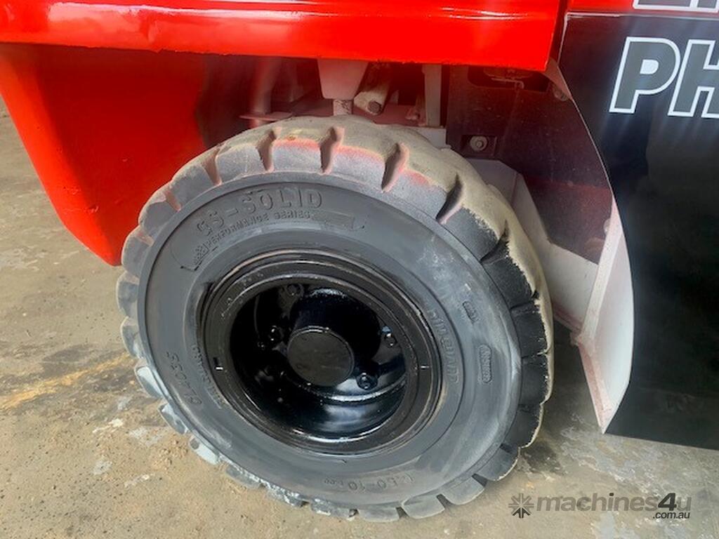 It has non-marking tyres, a 2.5-ton lifting capacity and a 4 metre reach.