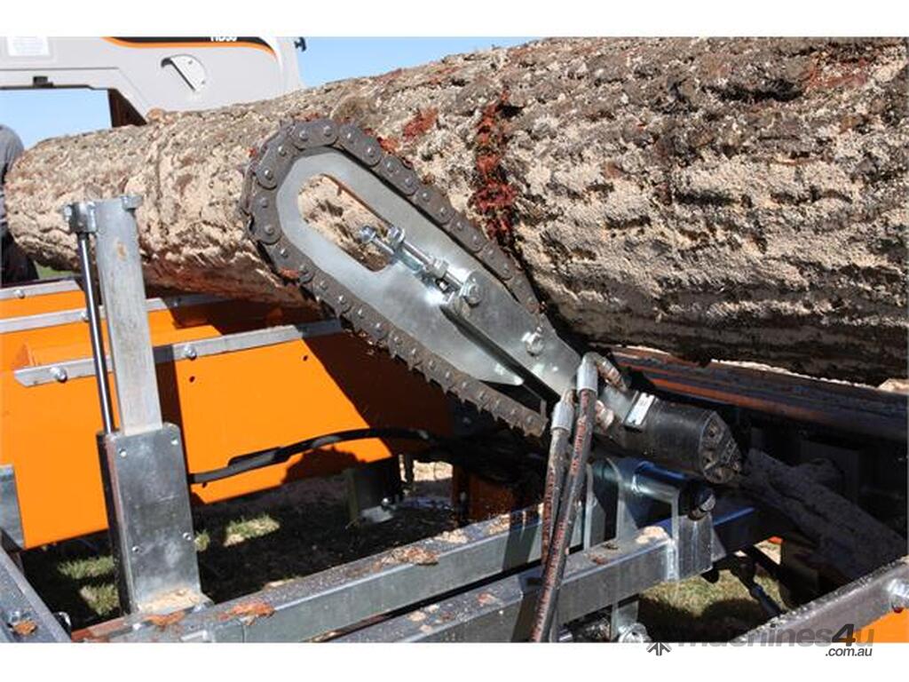 A hydraulic cylinder and hydraulic motor give you separate control of vertical and rotation functions. Features dual-direction rotation—turn your log in either direction. Equipped with deep-toothed chain, the log turner bites hard into gnarly bark to maximize traction. Use the log turner to roll logs into position for the first, second and third cuts.