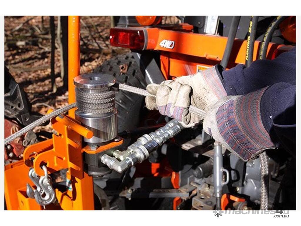 Hydraulic Winch Motor — powered by your tractor’s rear hydraulic outputs, the large heavy-duty hydraulic winch motor generates loads of constant pulling power.