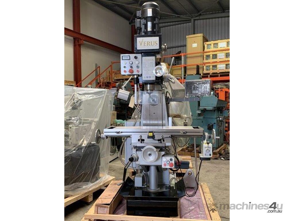 The Verus VTM-50 Universal Milling Machine has been developed with those customers in mind that require performance and quality at an economical price. Featuring premium Siemens electrical components, electronic variable speed, large table, X axis power feed, rapid feed to the knee, dovetail slideways, 3 axis digital readout, led work light and integrated coolant system.