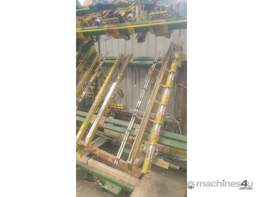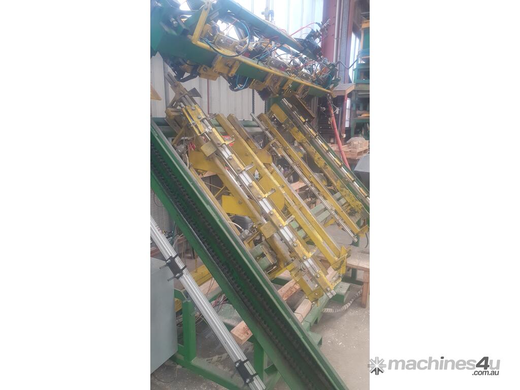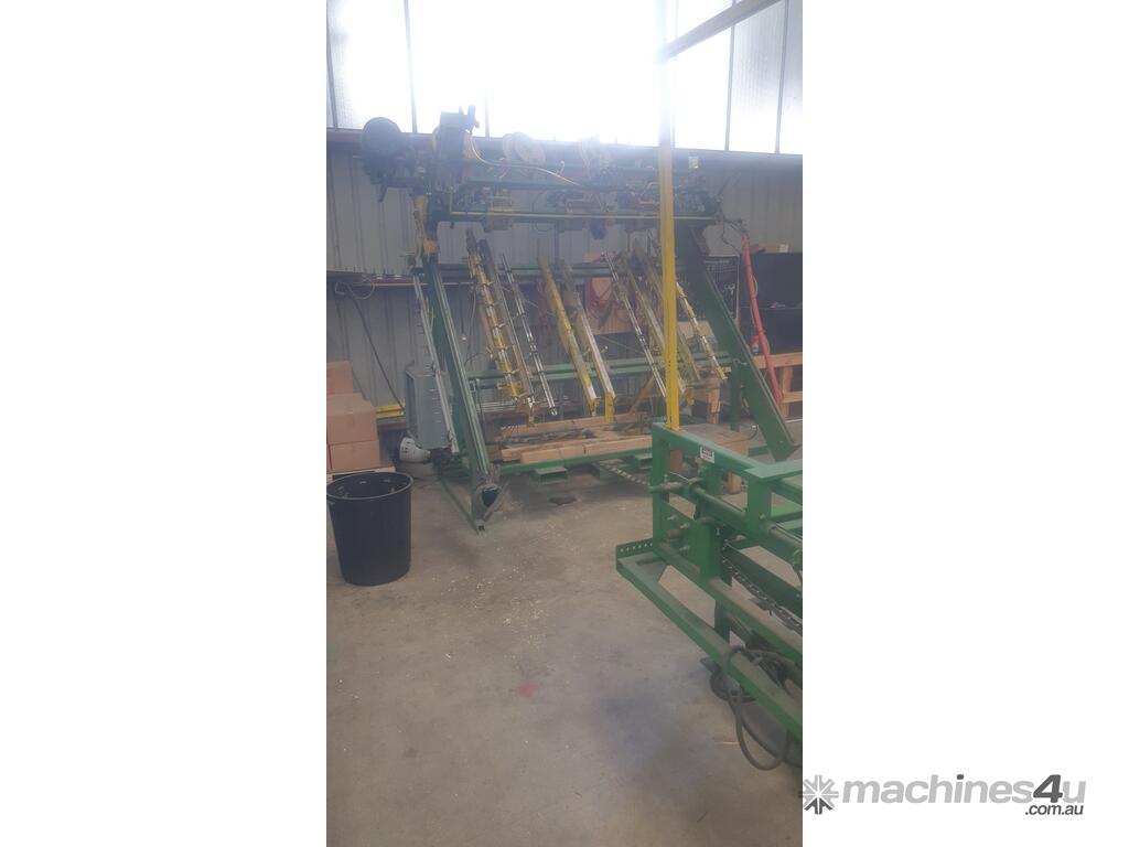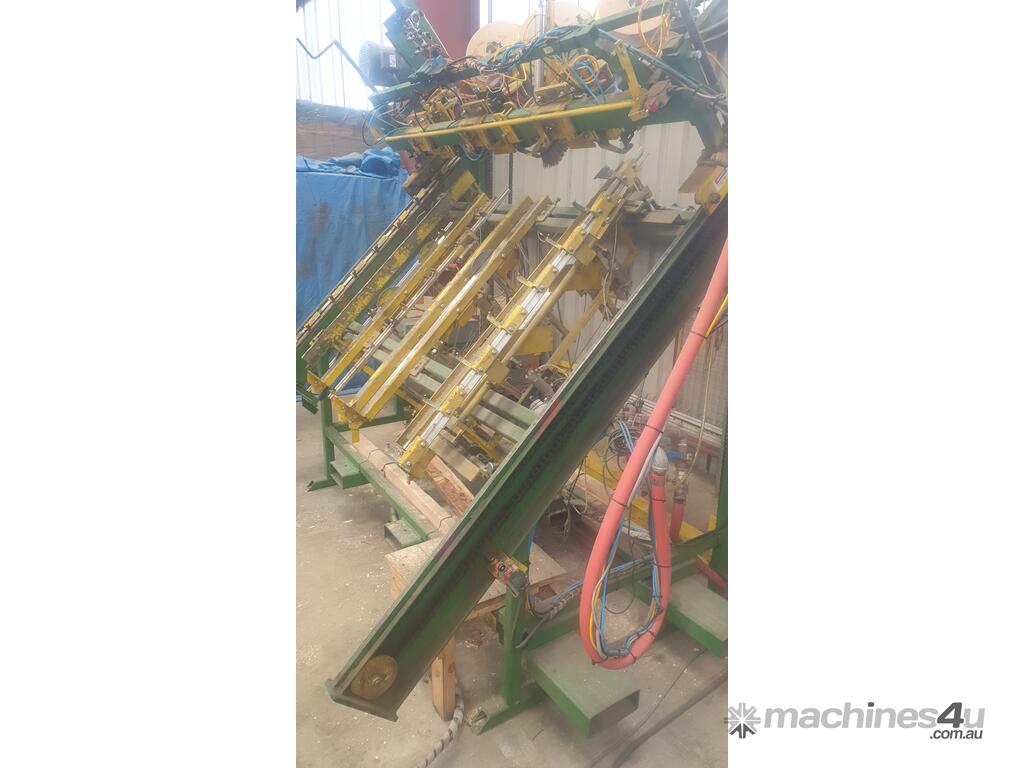 single man operation, comes with auto stacker and outfeed rollers, complete with box of spare parts and nail guns,
