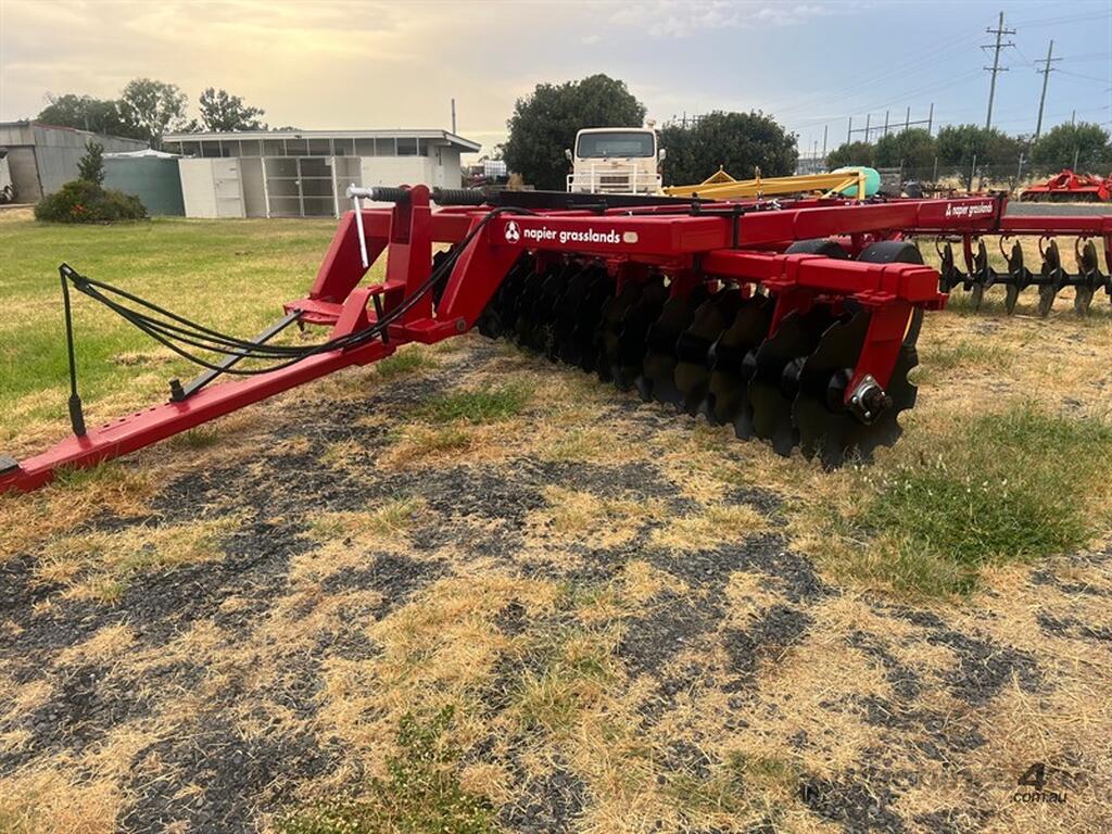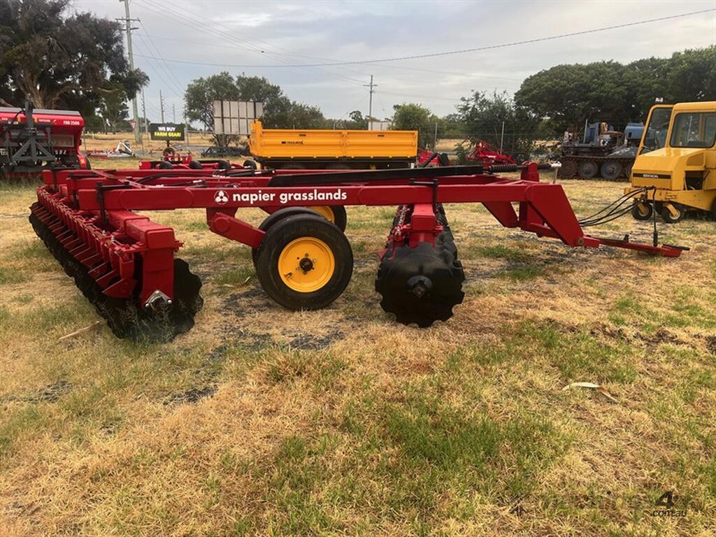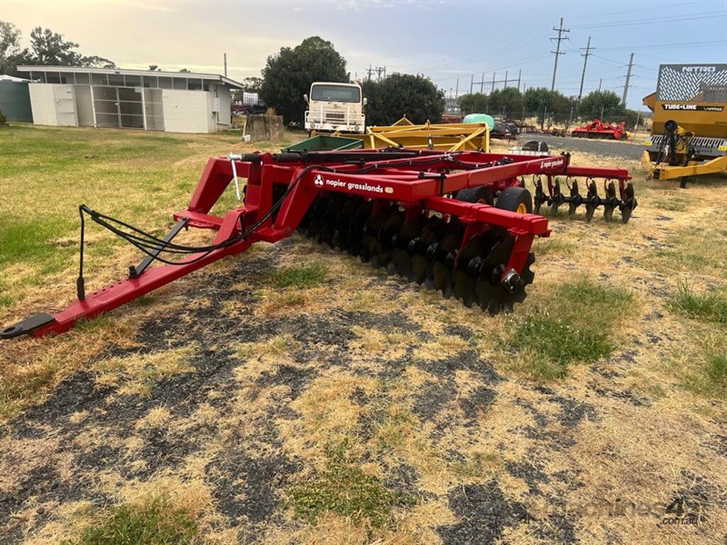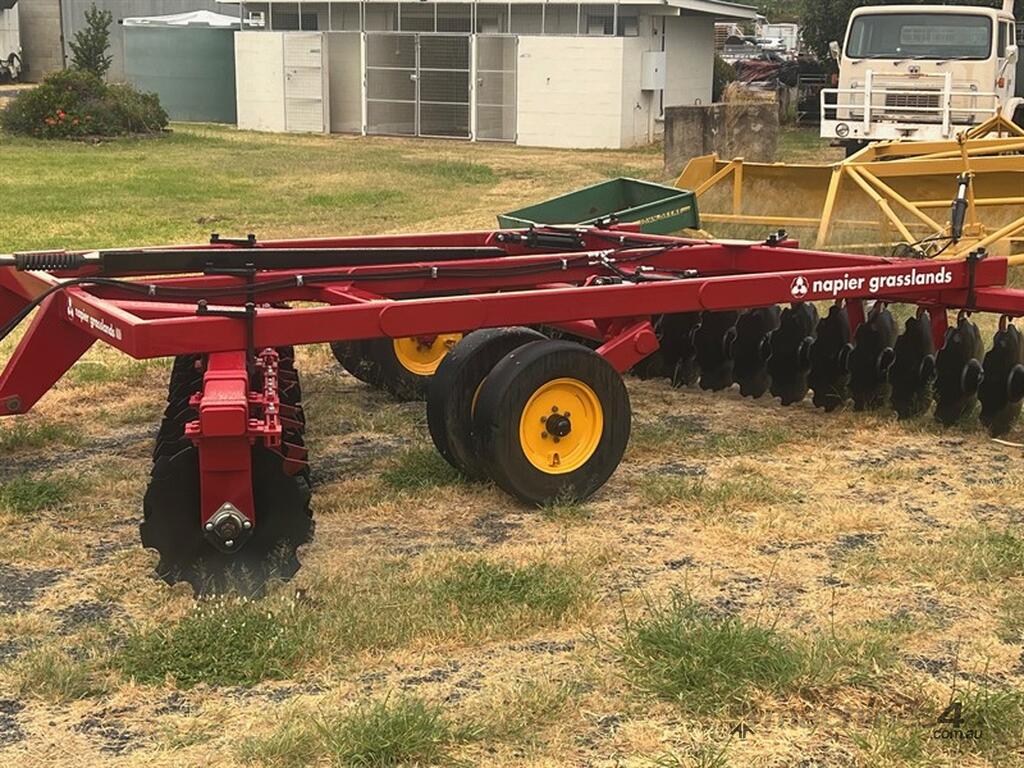 Napier 734 - 36 Plate Offsets. 36 disc, 4.4m cut width, Front gang new Boron discs, Rear Gang 95%, New bearings, 3 way adjustable scrapers, Rams, rebuilt and new hydraulic hoses, Sandblasted, rust proofed and repainted. NOTE: Offsets can be picked up/delivered after 25/3/26. Located Oakey, Qld
