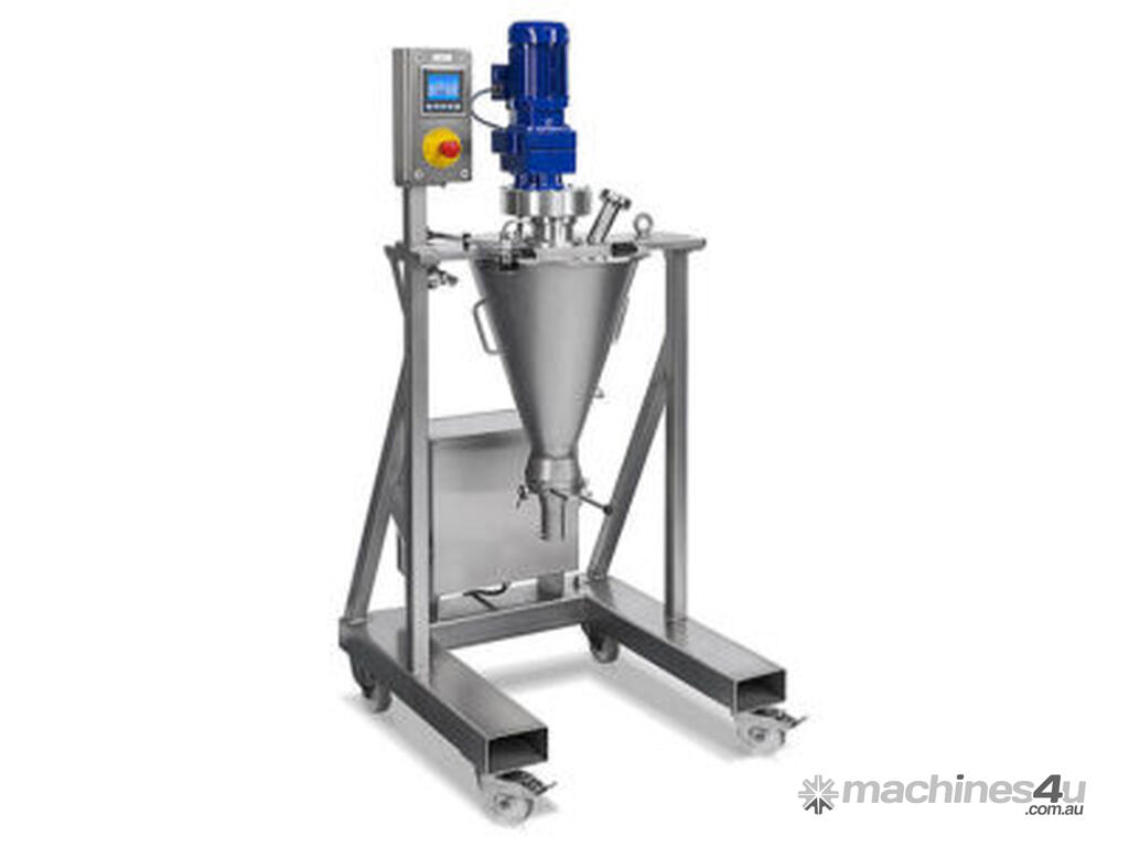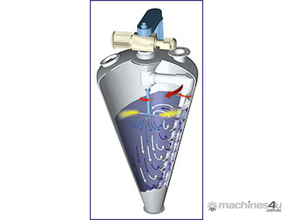 The Vrieco-Nauta Minimix is a convective cone mixer known for its high mixing efficiency and gentle operation, ensuring maximum mixing accuracy without damaging delicate products. It reliably handles small amounts starting at just 0.3 liters and is available in three sizes: 5, 10, and 20 liters, with 15-100% filling capacity.
