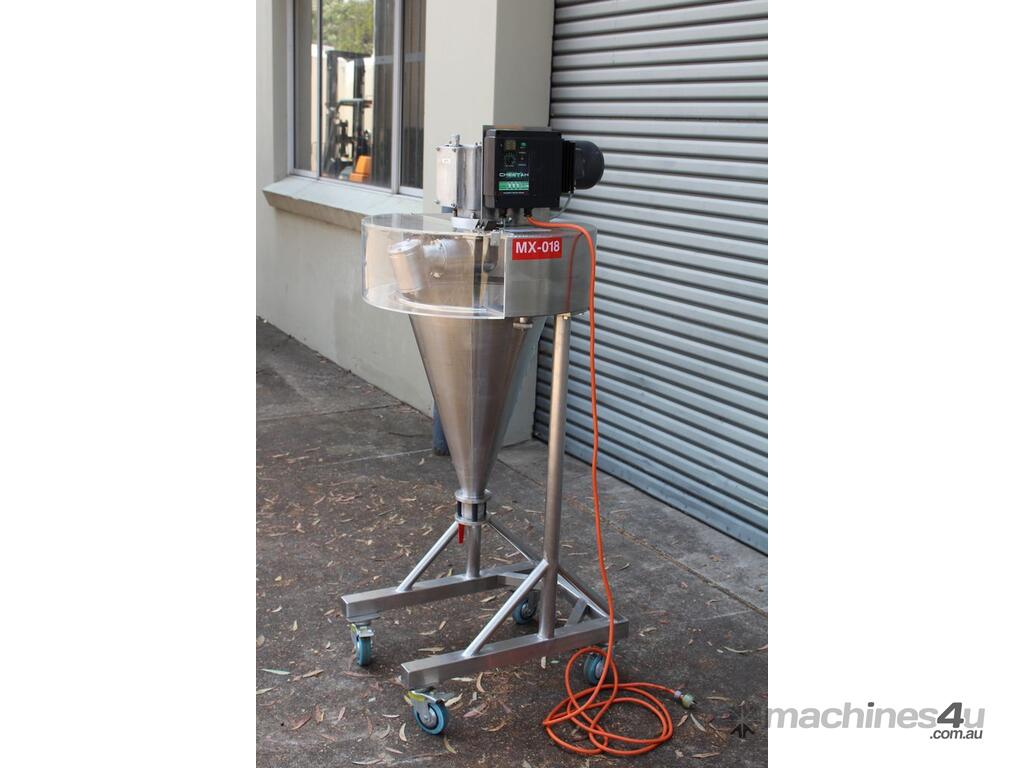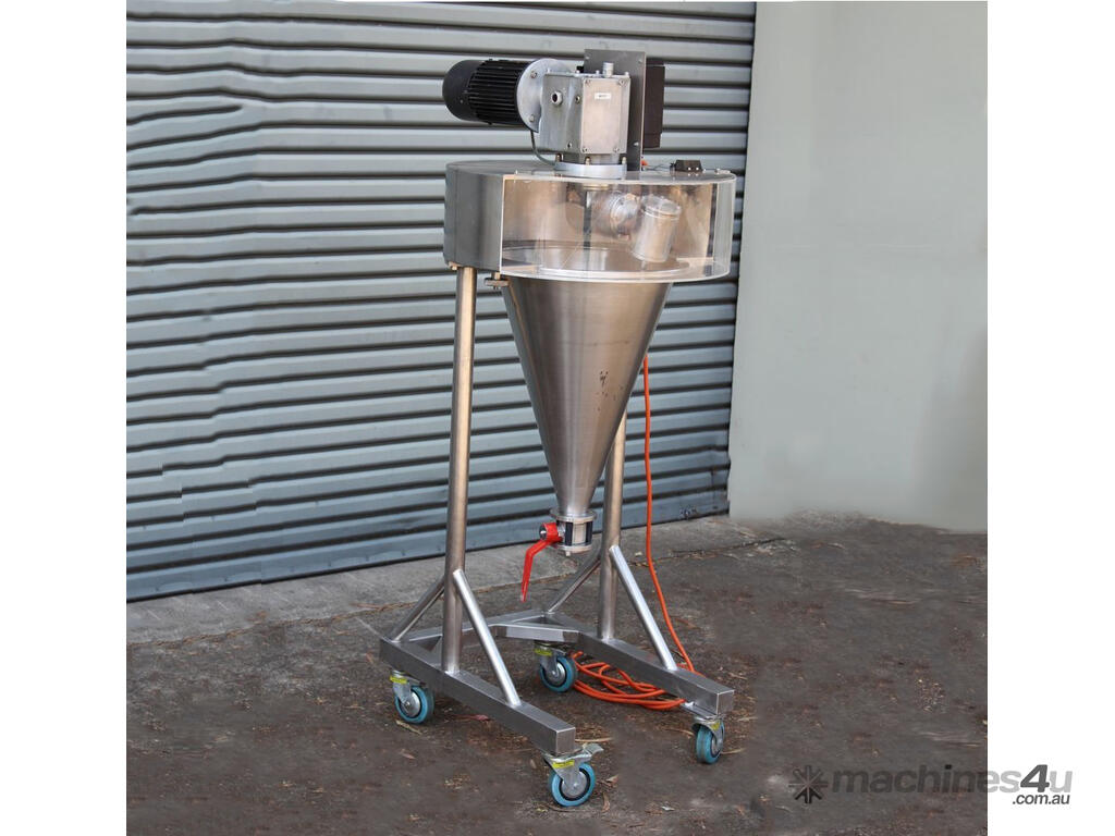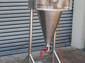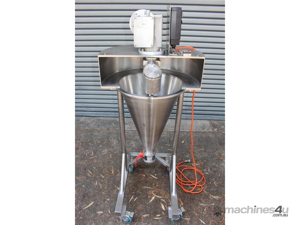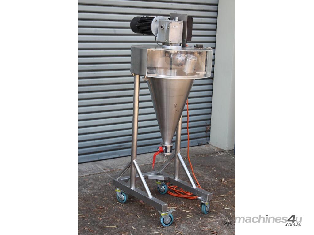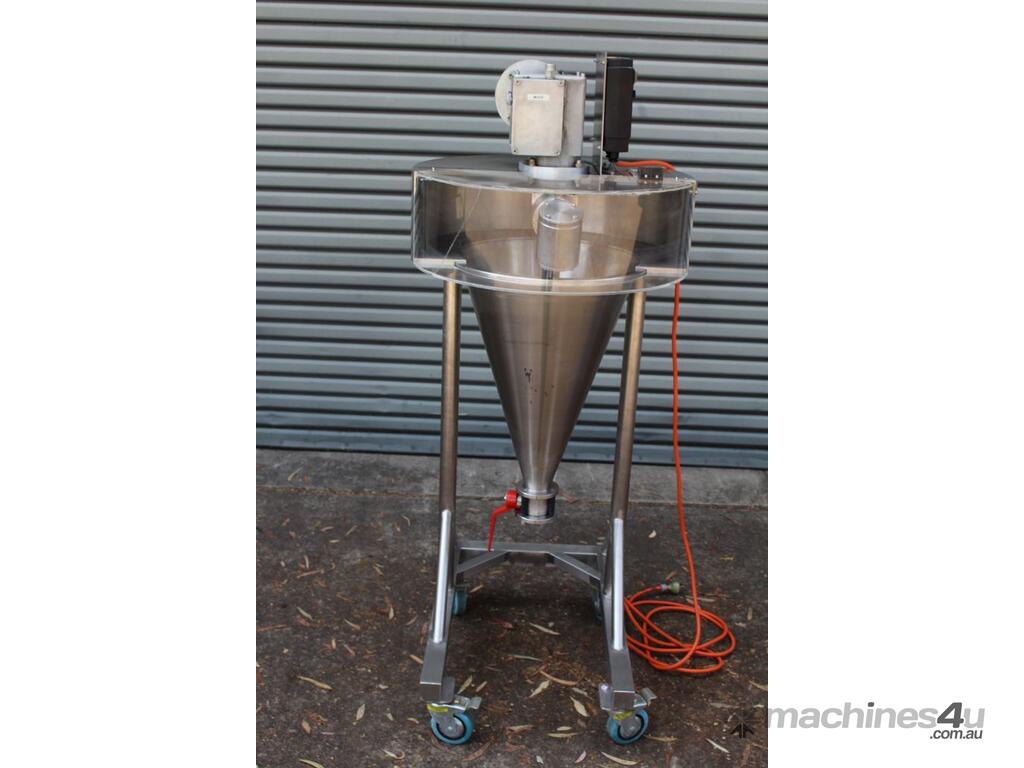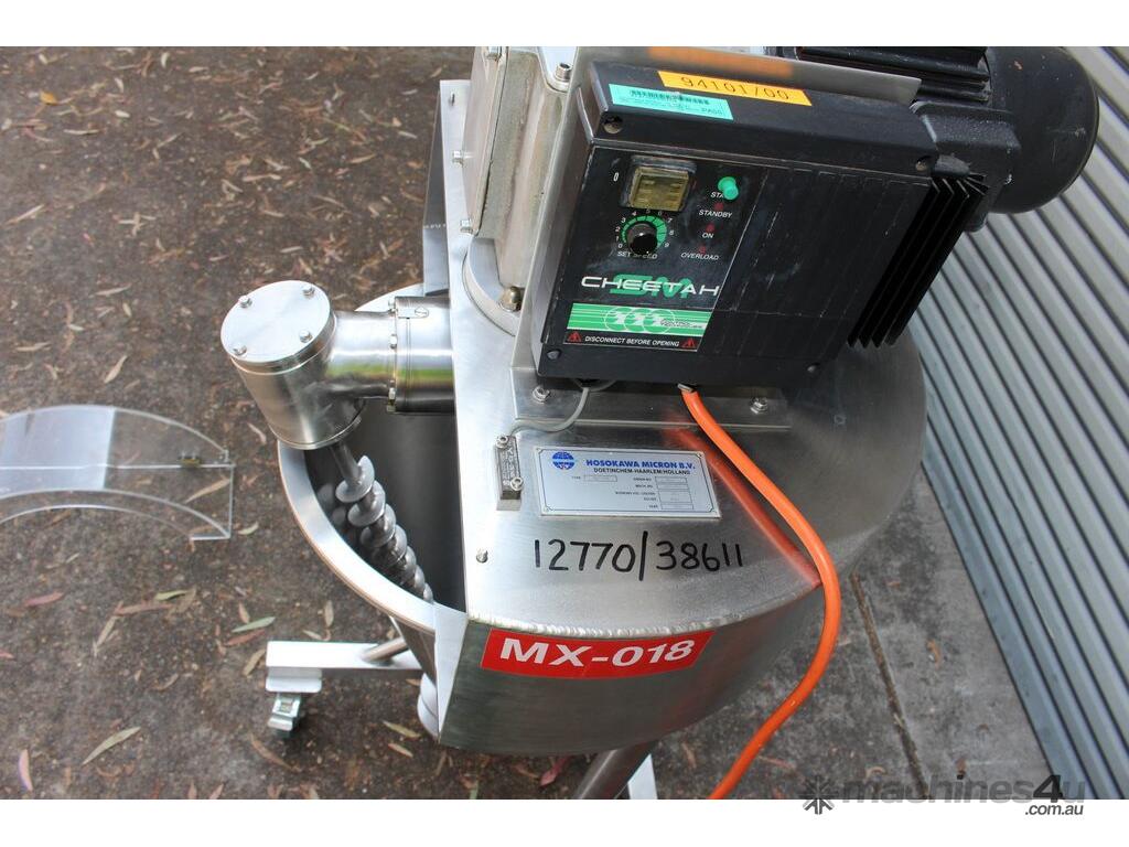 Nauta Mixer, "Hosokawa Muron B.V.", Model: DBY-20R, 20 Ltr working volume of liquids and 16.8 Ltr working volume of solids, 400mm dia x 580mm deep, 30mm outlet with valve, variable speed control, 0.25kW motor, interlocked guarding, mobile and mounted stainless steel trolley.