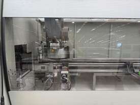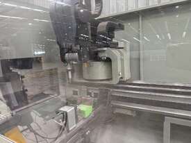 The 4th CN axis allows the electro spindle to continuously rotate from 0* to 180* to perform the work on the profile edge.