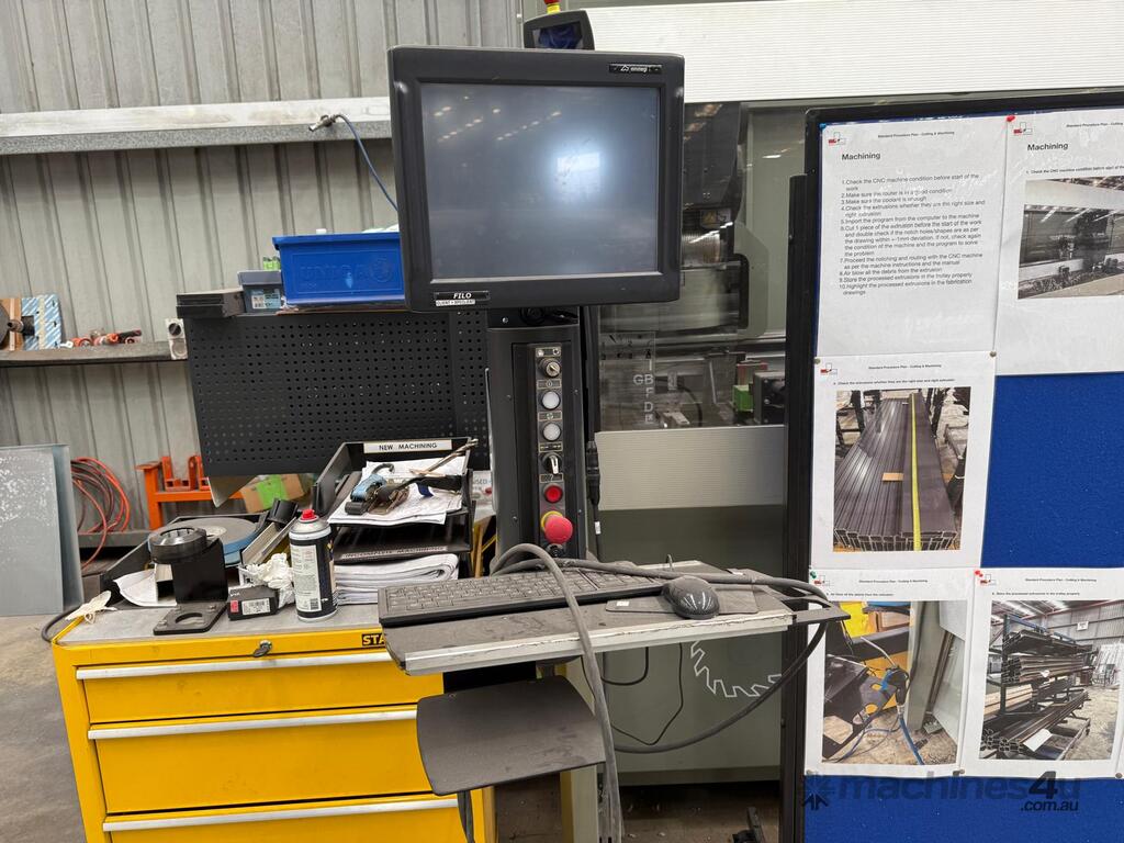 - 4000mm machine centre CNC with 4 controlled axis, used for the working bars of aluminium, PVC, light alloys in general and steel pieces up to 2mm.