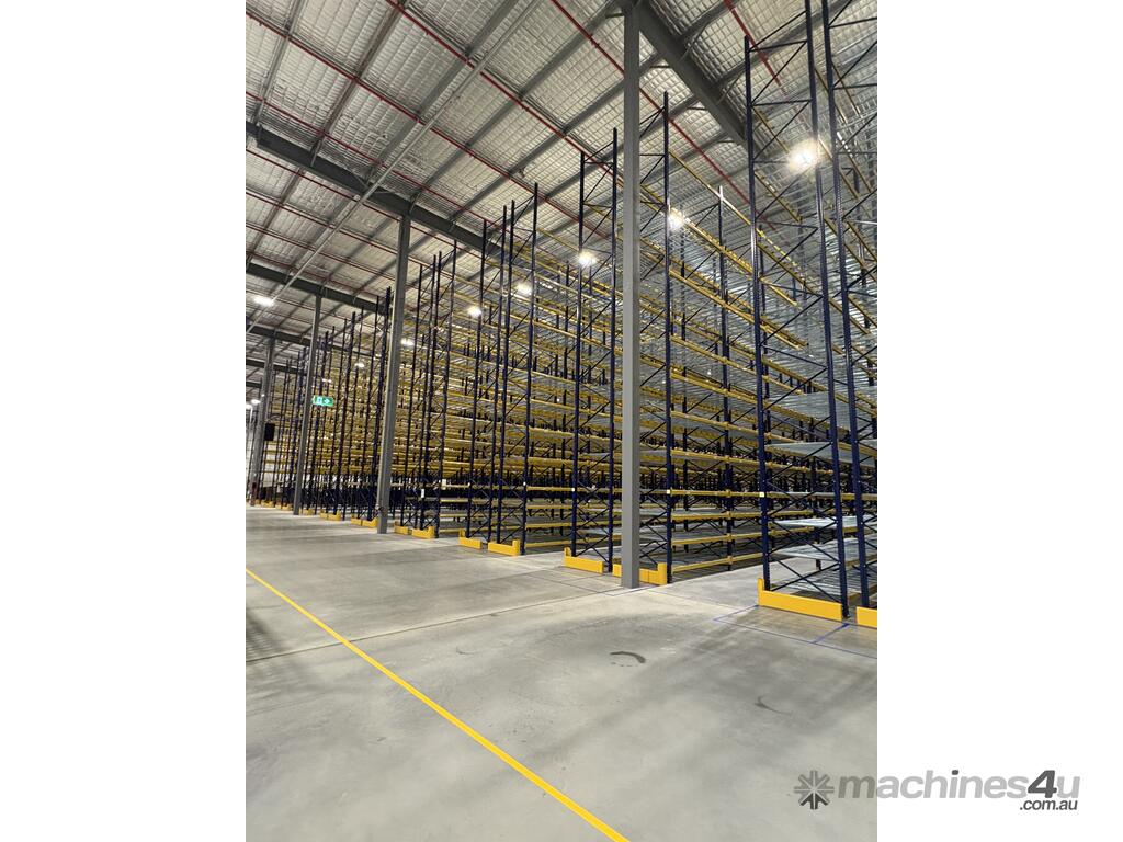 Available now due to a new warehouse closing down, this near-new pallet racking system offers an incredible opportunity to acquire premium-quality infrastructure at a fraction of the original cost. Originally installed for a high-capacity distribution center, the system was never or barely used and is ready for immediate relocation or resale.