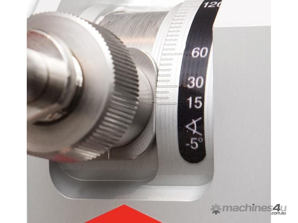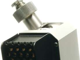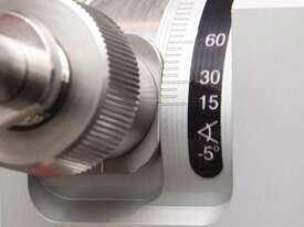 Insert the electrode in the electrode holder and lock it in the stick-out. Set the variable degree scale at the desired angle. Place the electrode holder in the grinder. Start the grinder and rotate the holder until it reaches the stop and the grinding is finished.