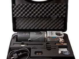 Neutrix is our hand-held and portable dry grinder for grinding of Tungsten electrodes, perfect for field welding. This grinder improves in-field grinding of electrodes with a dust filter and dust collector, ensuring a safer grinding environment for the welder.