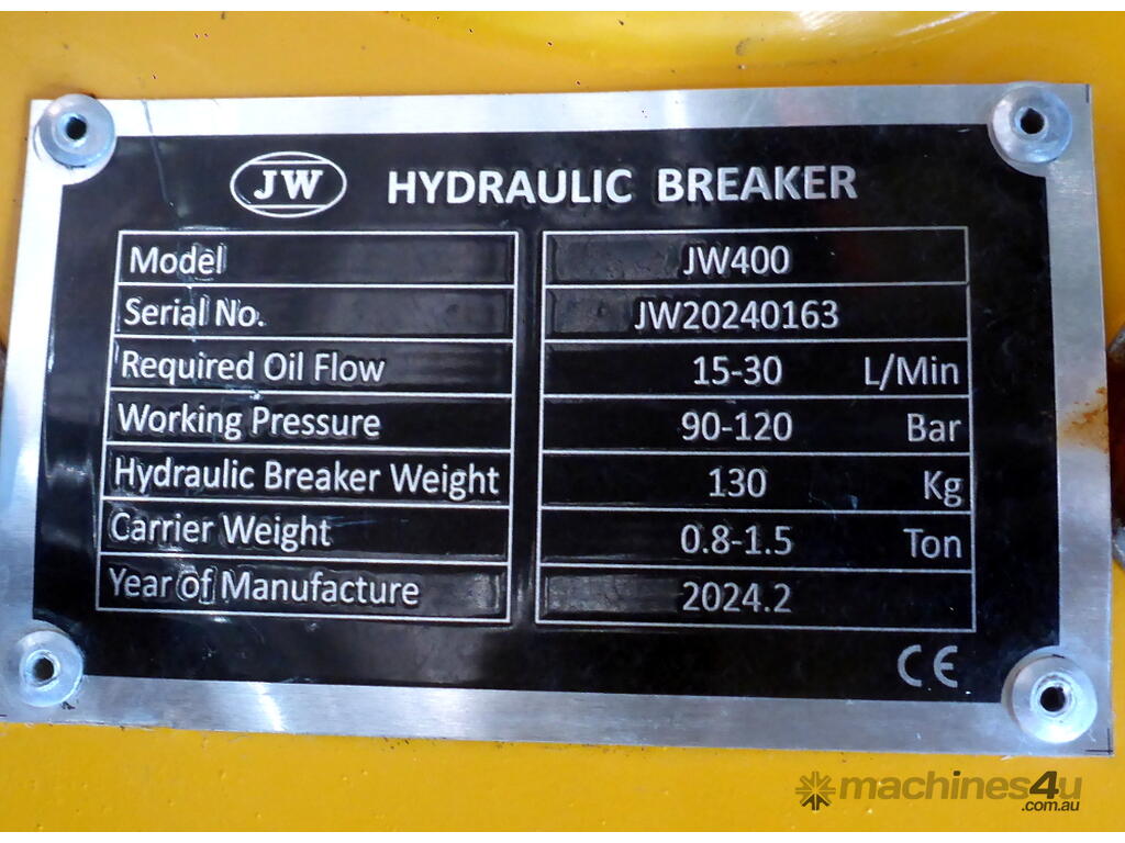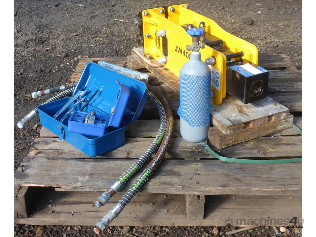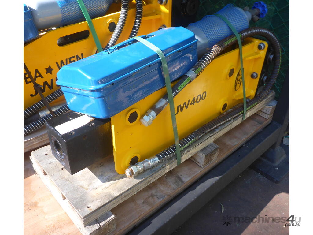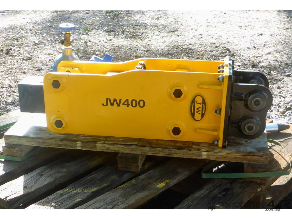 New Jea Wen JW400 Excavator Hydraulic Hammer Rock Breaker to suit: 0.7-1.5 ton machine. Great for loosening and breaking up rock, rocky ground, concrete, tarmac, paved areas, demolition etc.