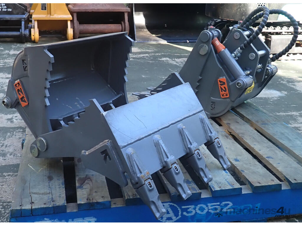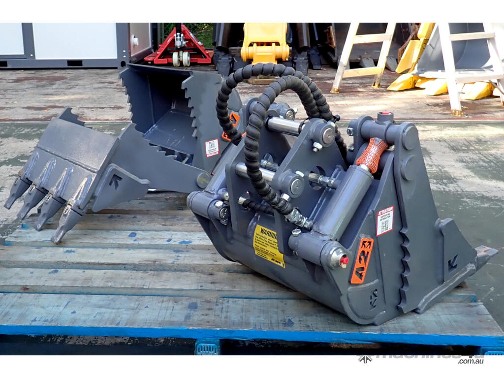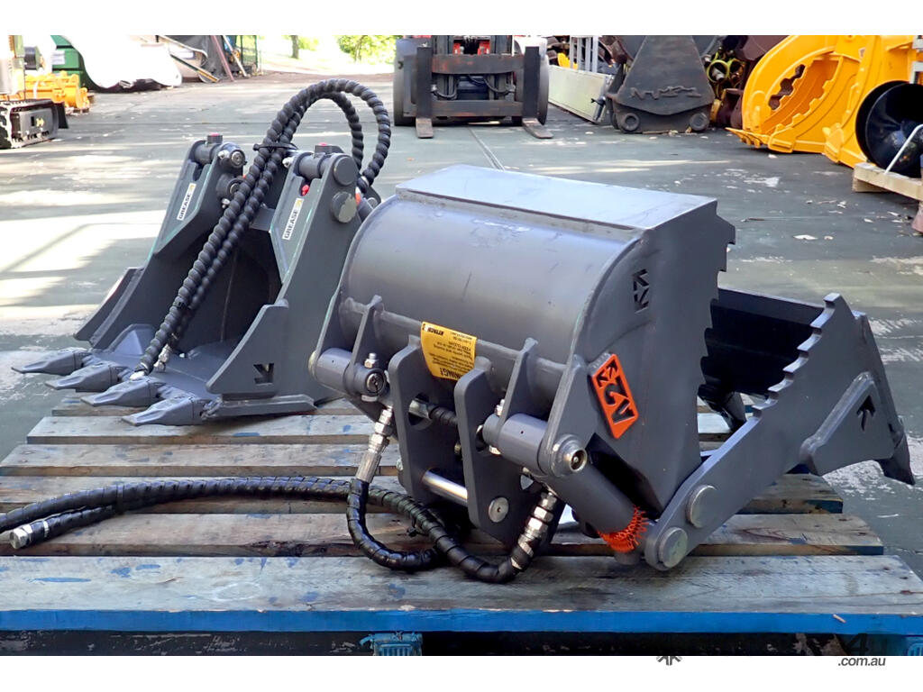 This is a well engineered, heavy duty Hydraulic 4-in-1 Bucket, made by the Australian company: Attach2 Equipment.
