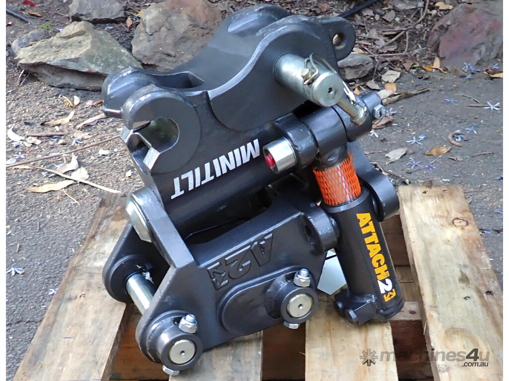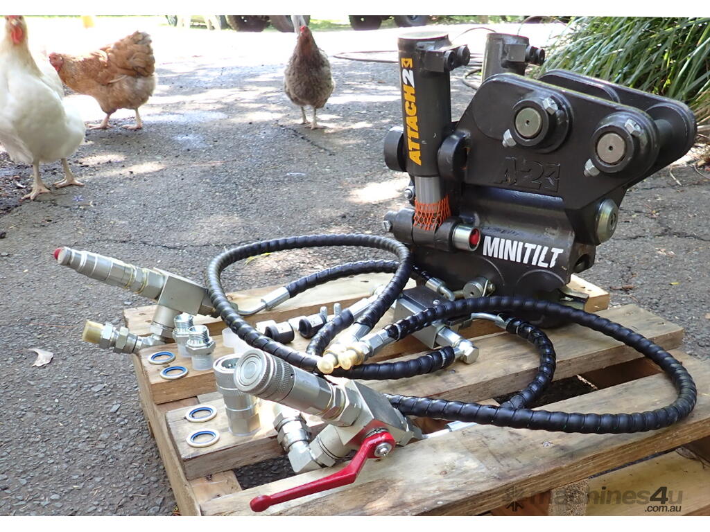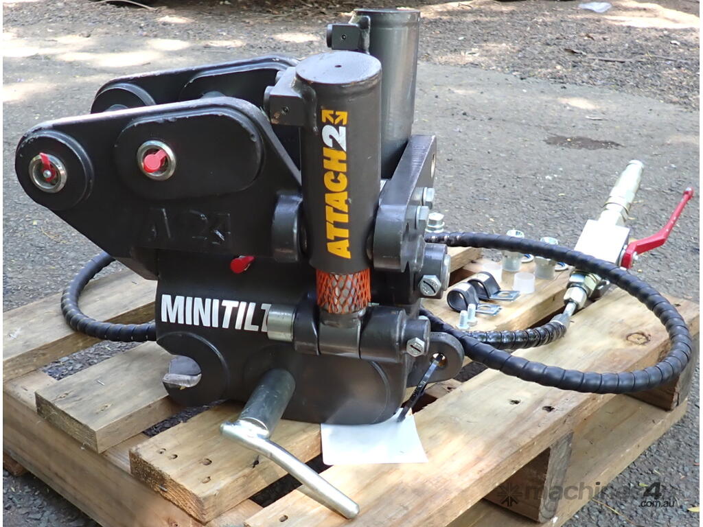 New Attach2 MiniTilt Excavator Hydraulic Titling Quick Hitch Coupling to suit 1-3 Ton machines, only uses 1 set of Hydraulic Lines.