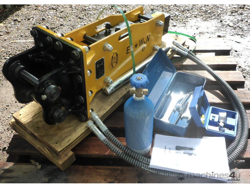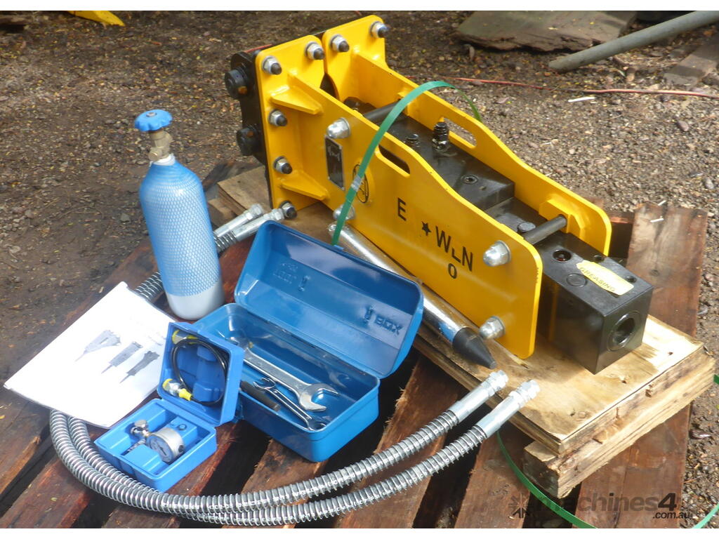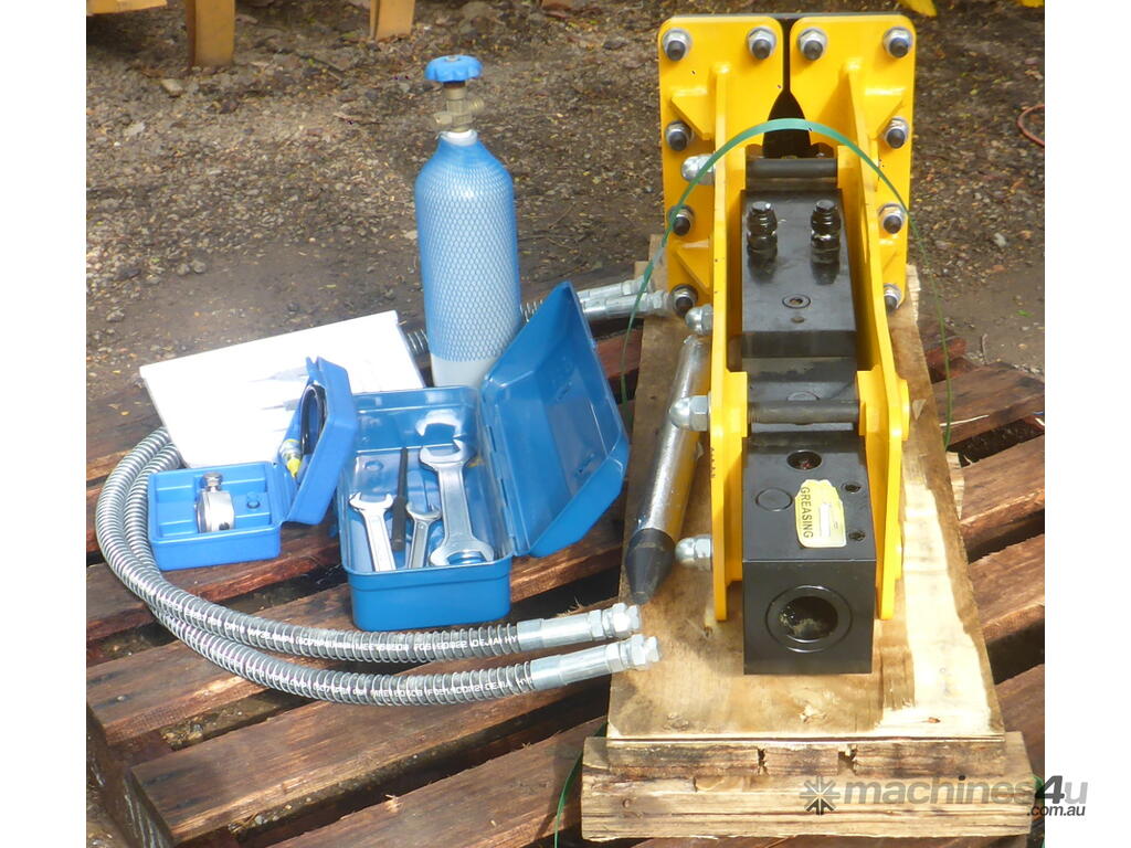 Comes with a 44.3mm Point Moil, Hoses, Toolbox with various Spanners etc. and a Nitrogen Gas Bottle & Pressure Gauge Kit for regassing the breaker.